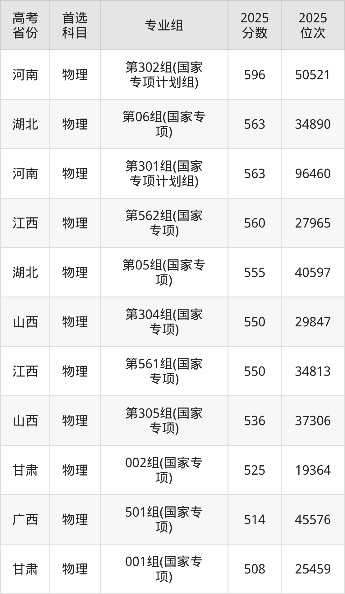 | 高考 省份 | 专业组 | 选科要求 | 2025 分数 | 2025 位次 |