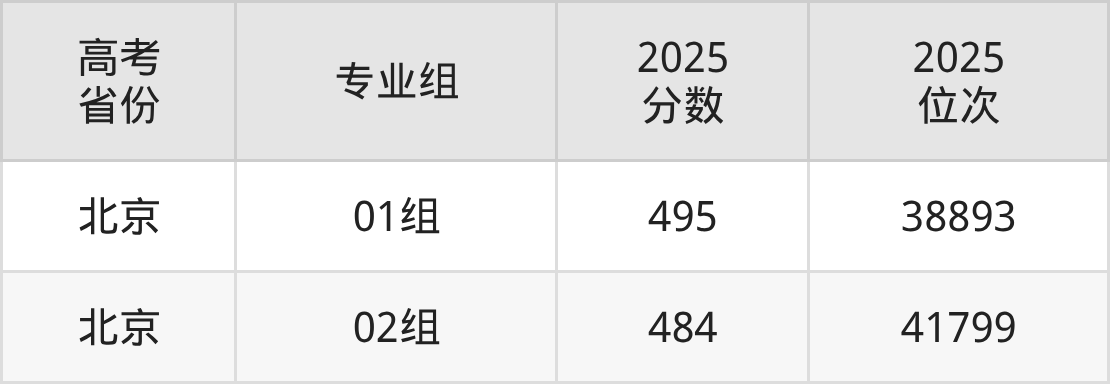 | 北京 (本 科批) | 02组 | 不限 | 543 | 25961 |