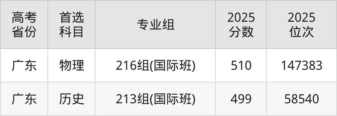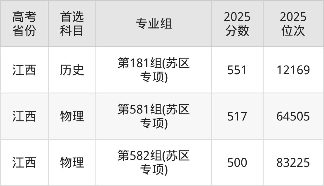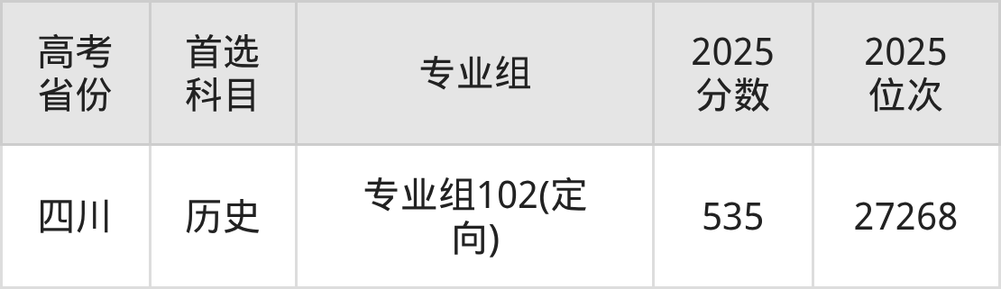 | 高考 省份 | 专业组 | 选科要求 | 2025 分数 | 2025 位次 |