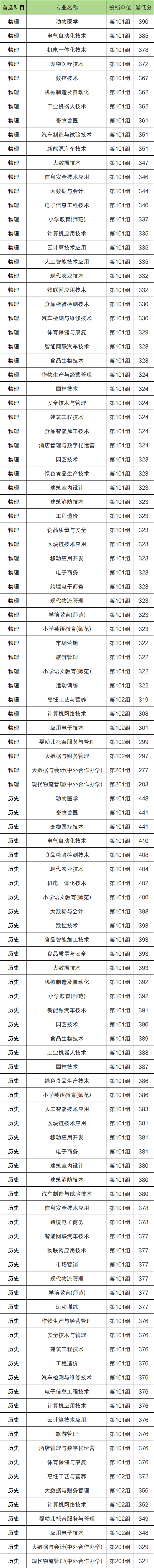 征集志愿:历史类最低分389分,物理类最低分301分。