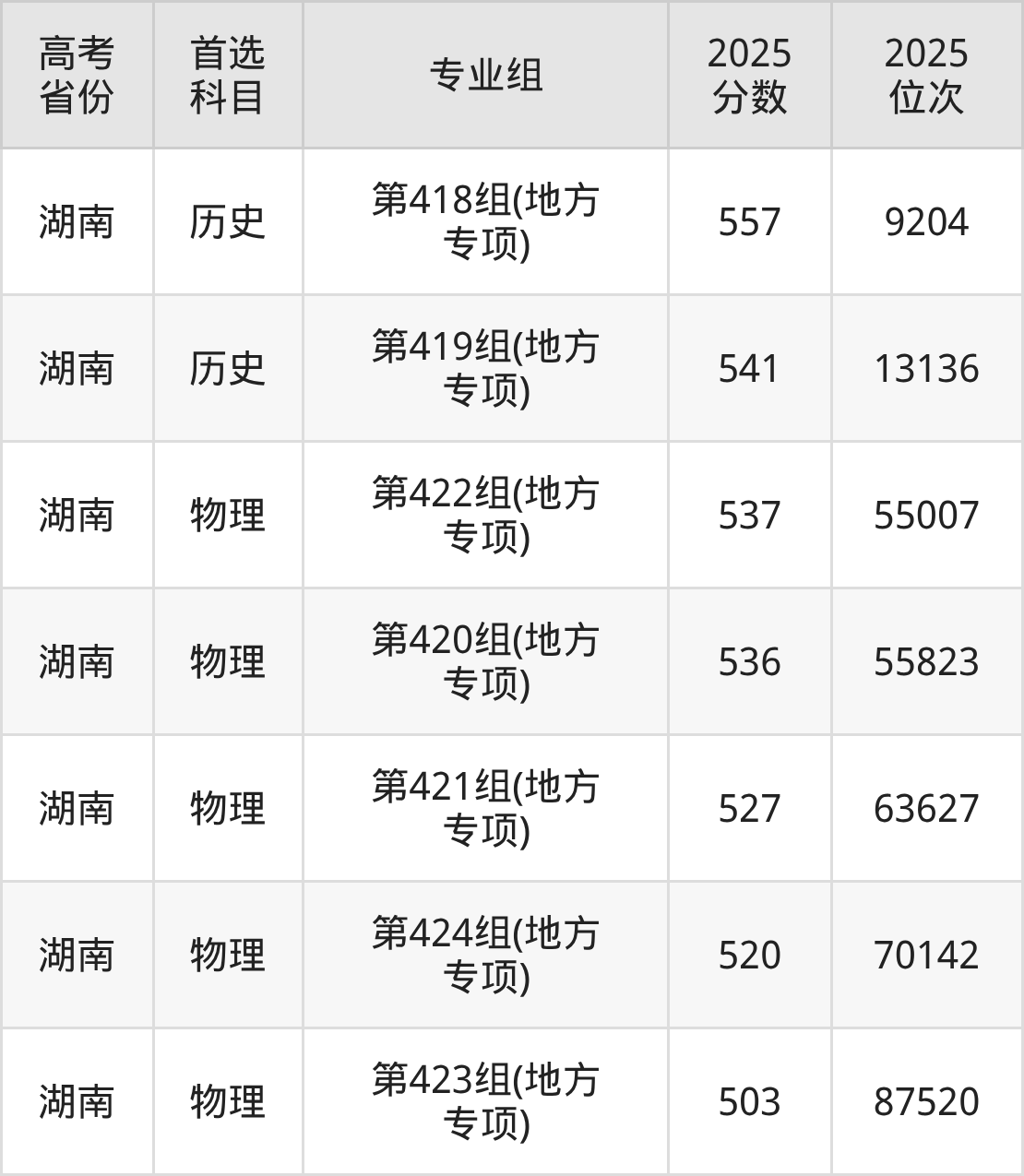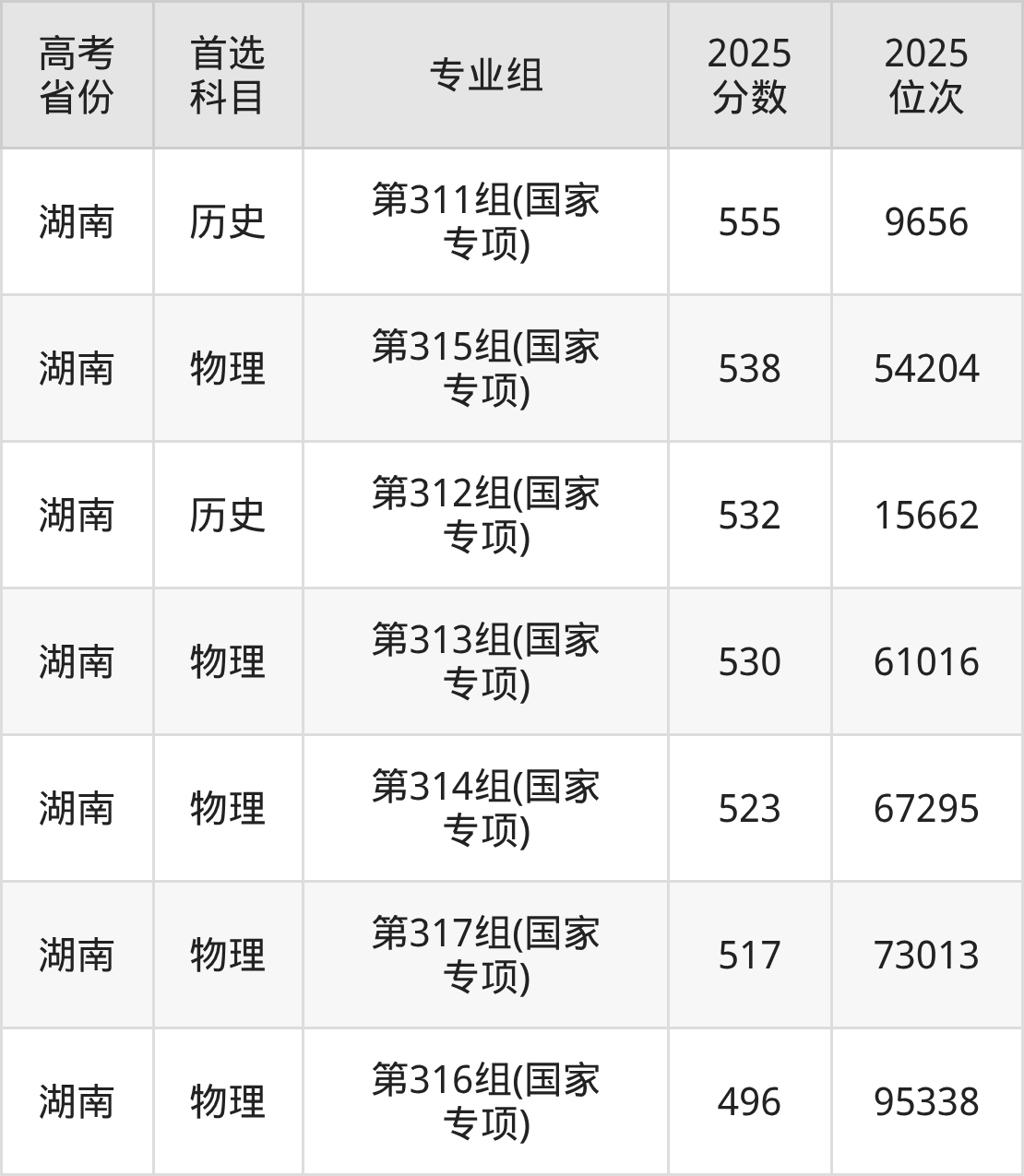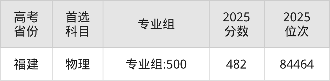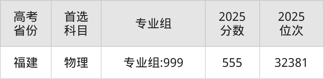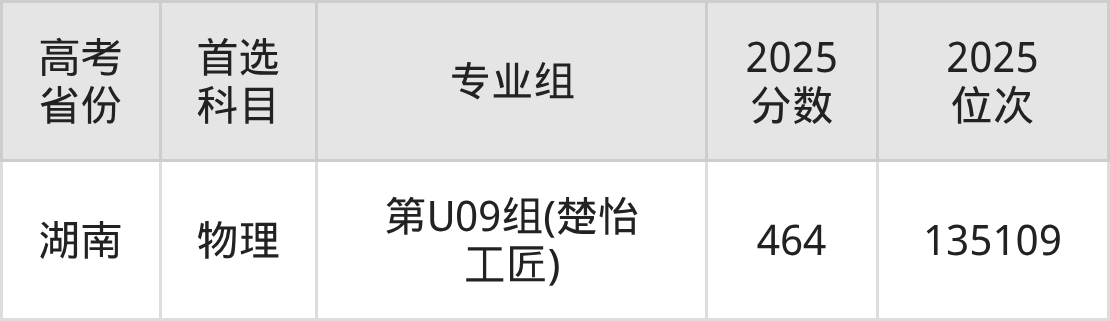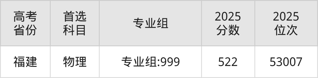 | 高考 省份 | 专业组 | 选科要求 | 2025 分数 | 2025 位次 |