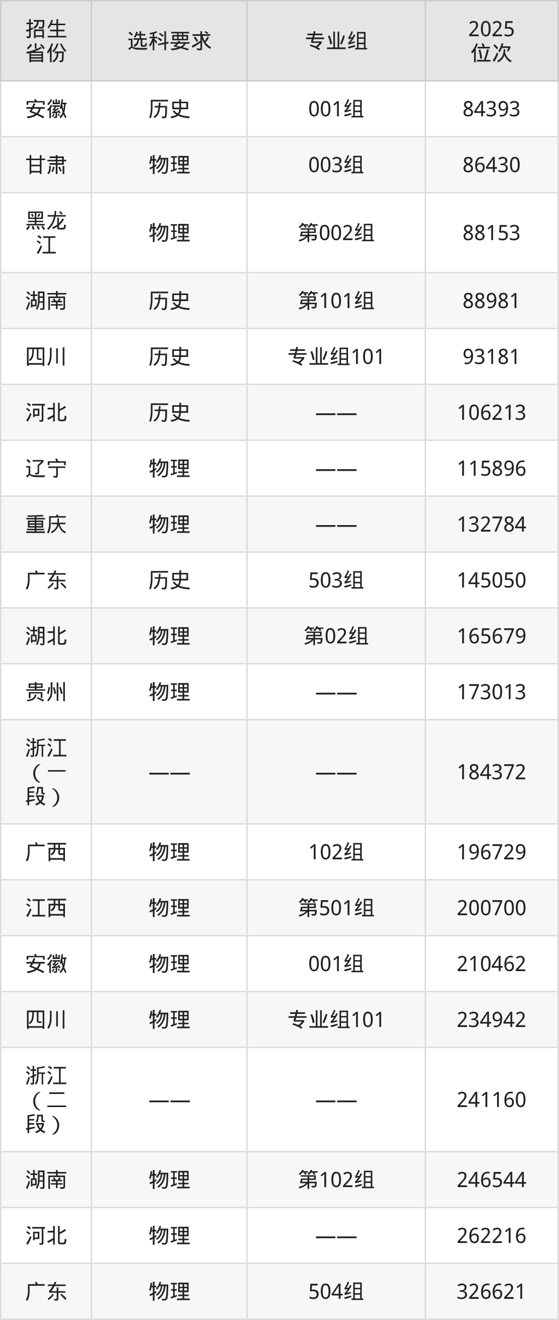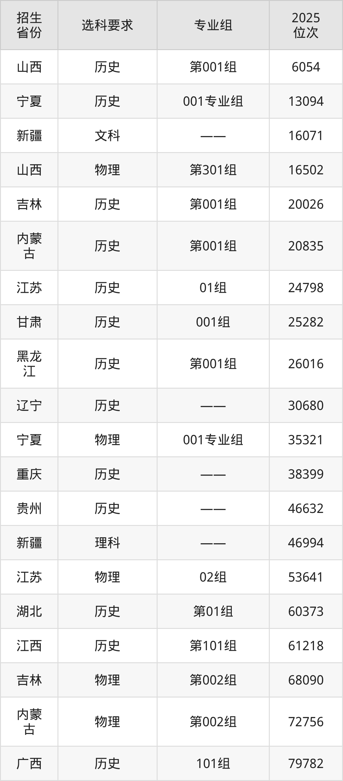 陕西交通职业技术学院2025年在全国各省的位次差异较大,最高位次是6054位(山西历史类)、最低位次是364540位(山东)。各省具体位次请看下图: