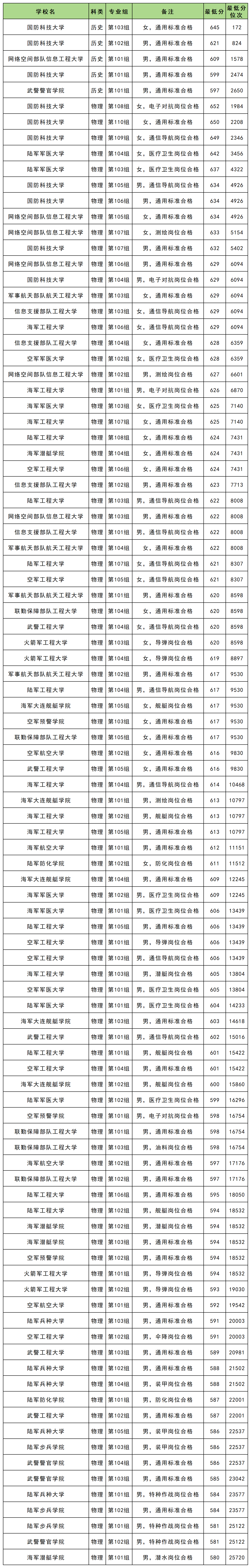 2025年在湖南招生的军校一共有22所,部分军校在湖南的最低录取分数线如下: