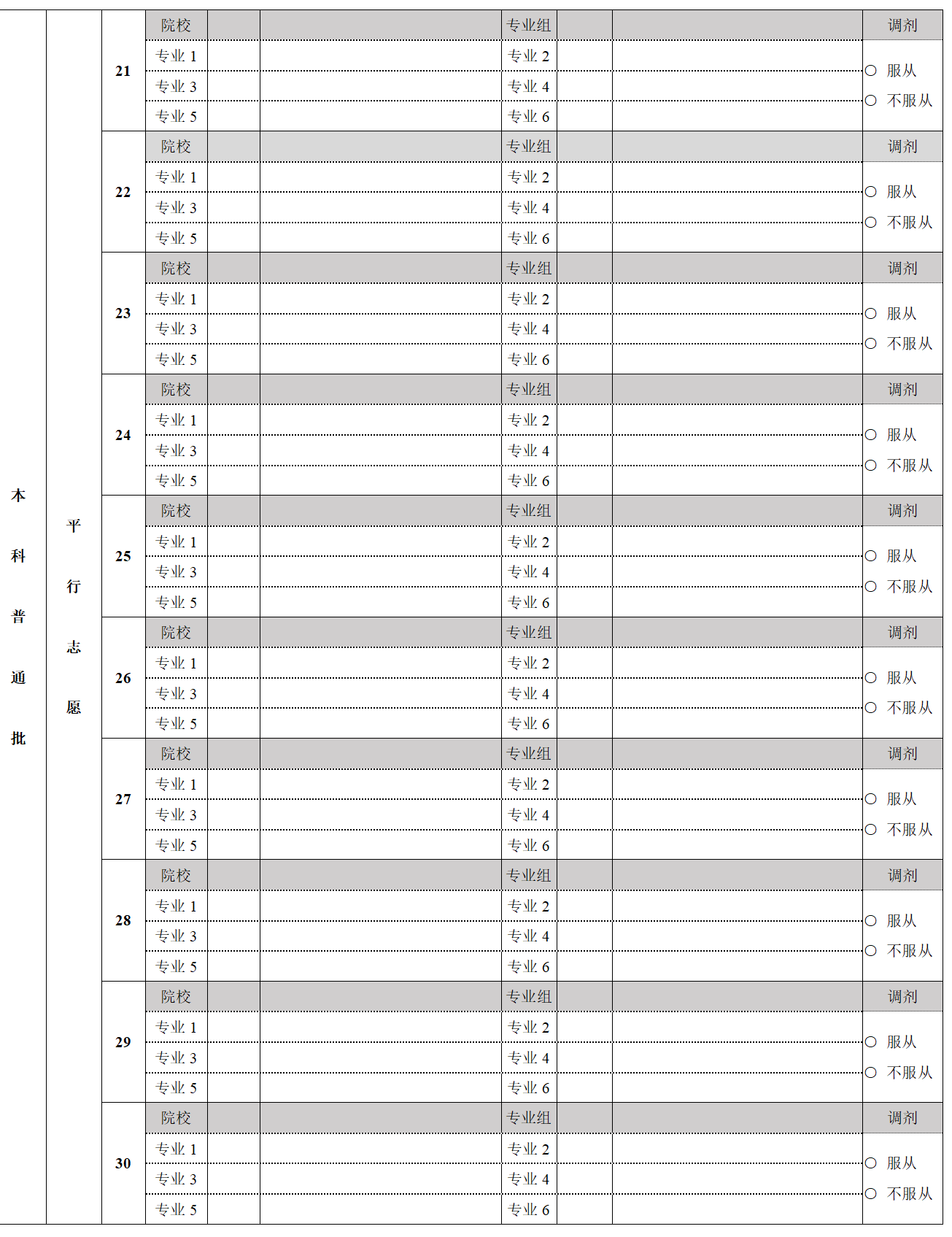 二、北京高考志愿表填写样本