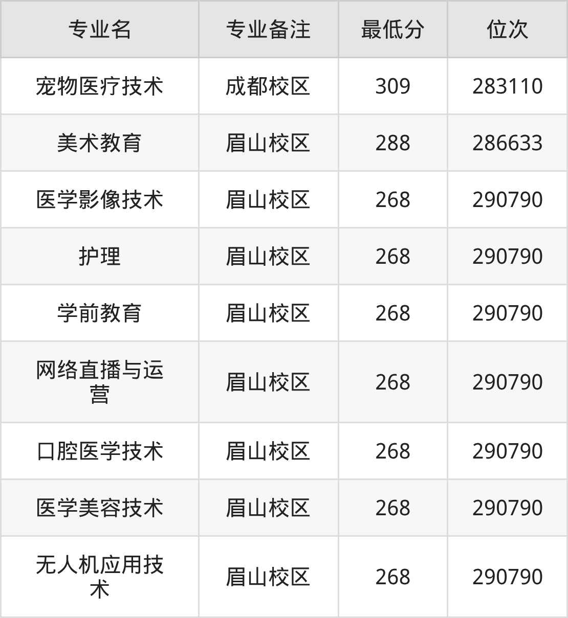 1、宠物医疗技术(成都校区):309分、位次283110名;