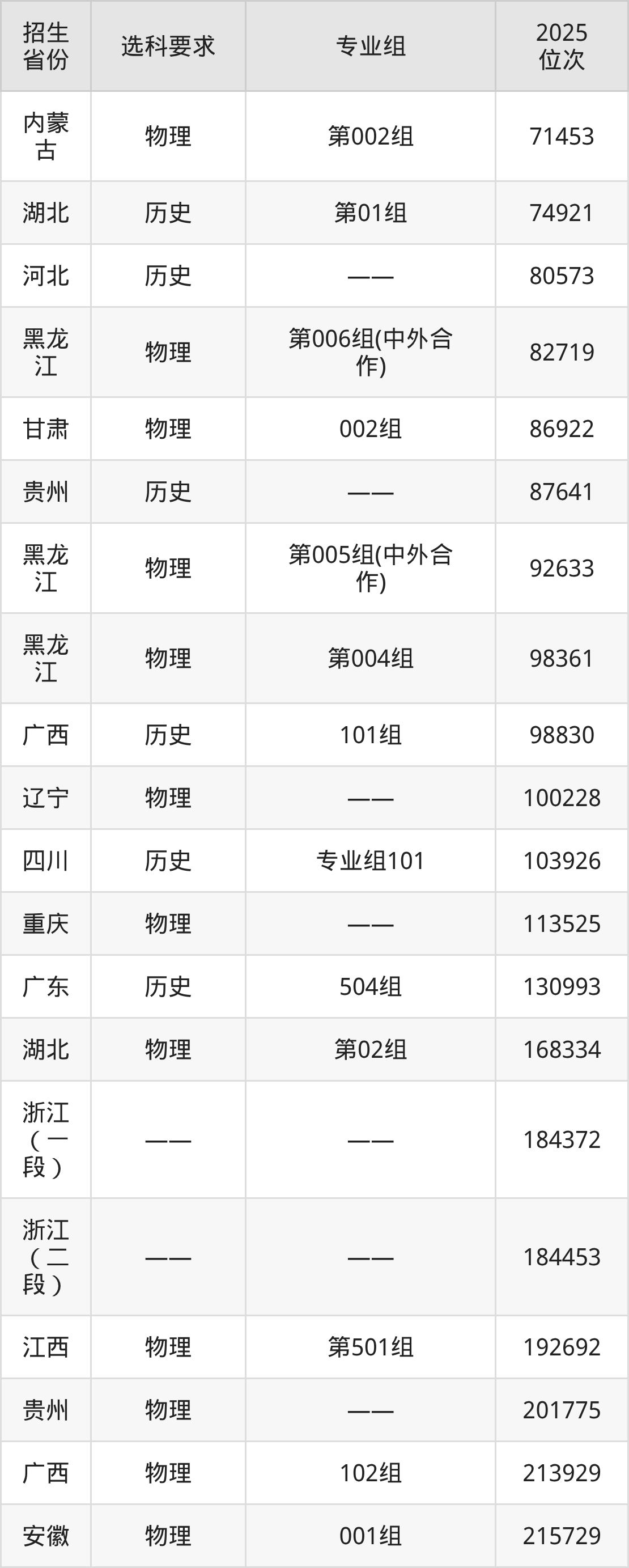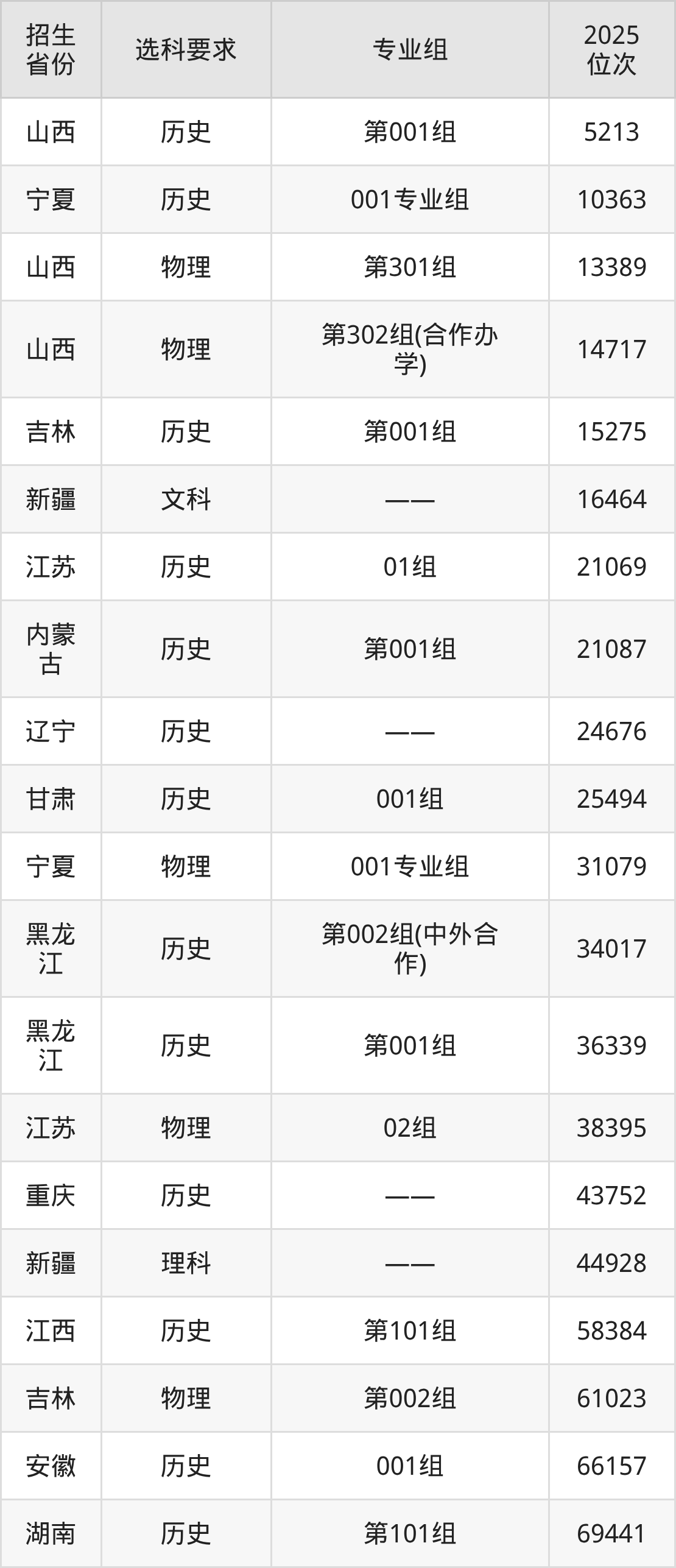 哈尔滨铁道职业技术学院2025年在全国各省的位次差异较大,最高位次是5213位(山西历史类)、最低位次是336541位(山东)。各省具体位次请看下图: