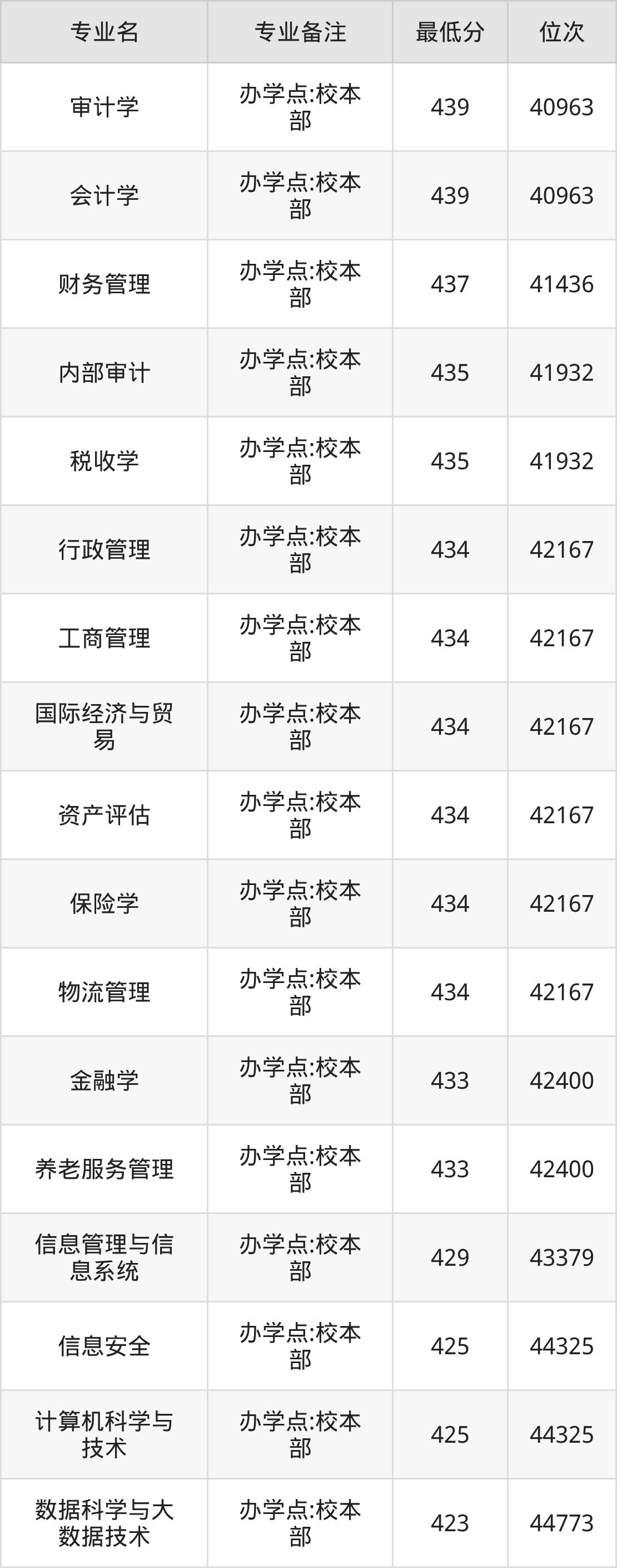 4、内部审计(办学点:校本部):435分、位次41932名;