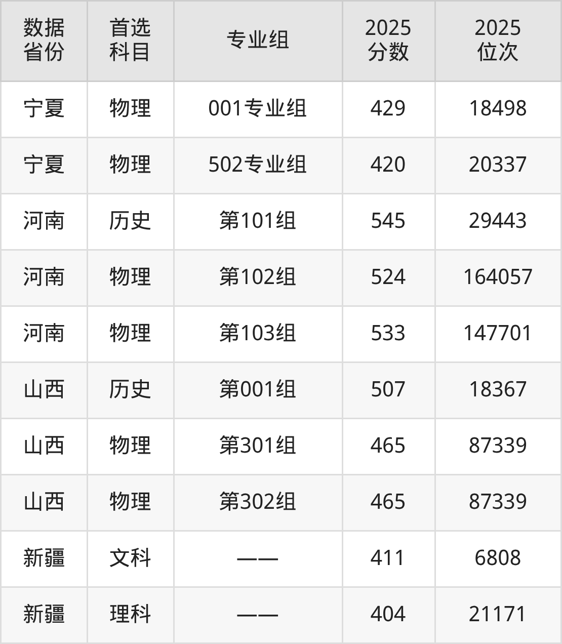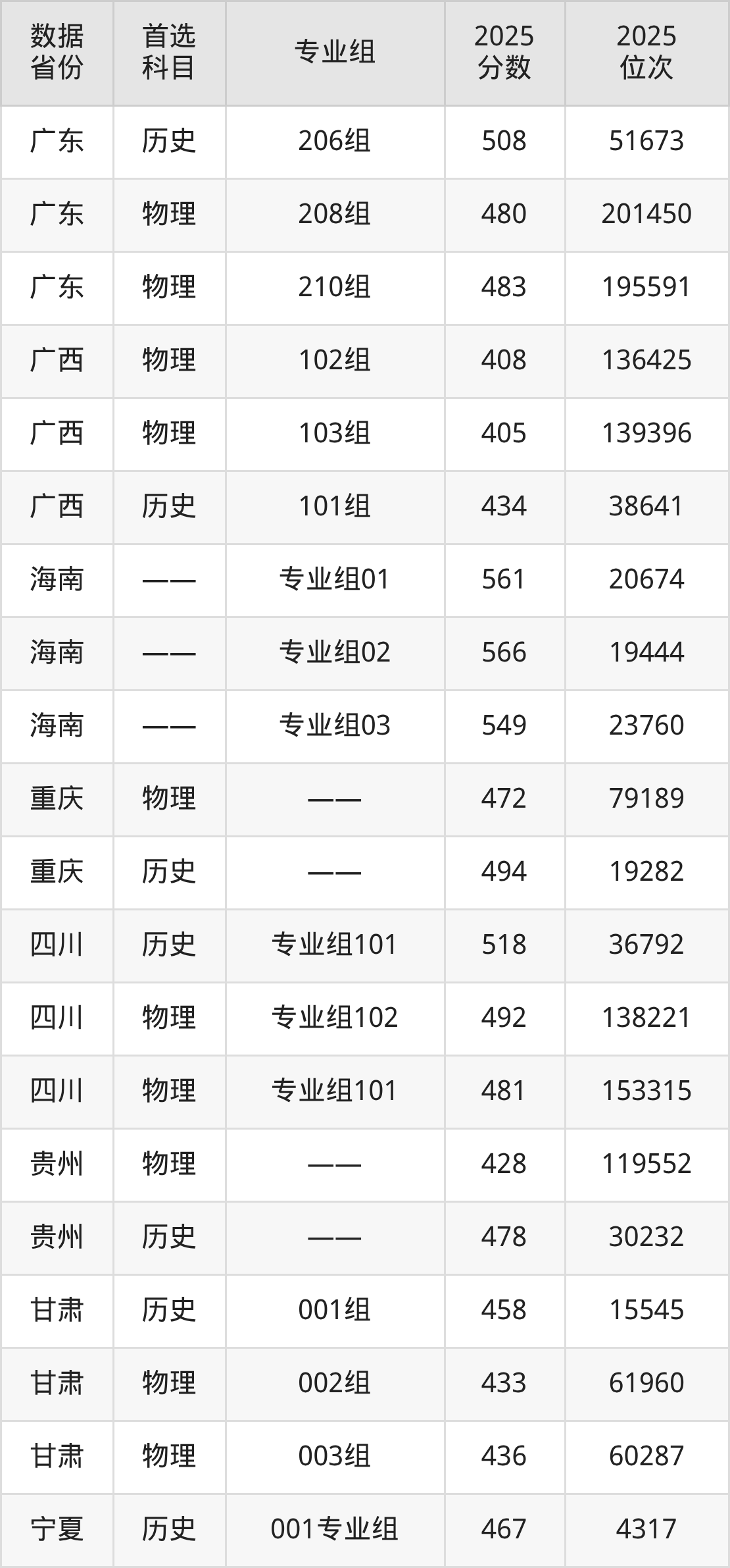 2025年南京审计大学金审学院全国录取分数线最低是404分,最高是566分,平均分在479分左右。在多数地区录取最低分均超过410分。低于410分能上的地区只有广西和新疆,高于平均值较多的是海南、河南、江苏和河北等地,均有专业组最低分在524分及以上。