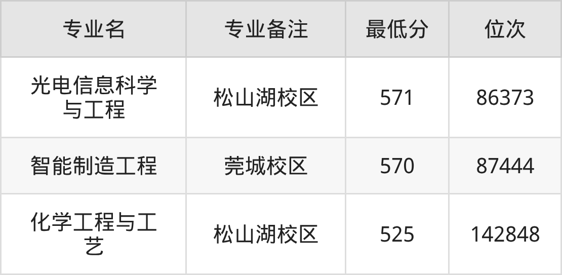 1、光电信息科学与工程(松山湖校区):571分、位次86373名;