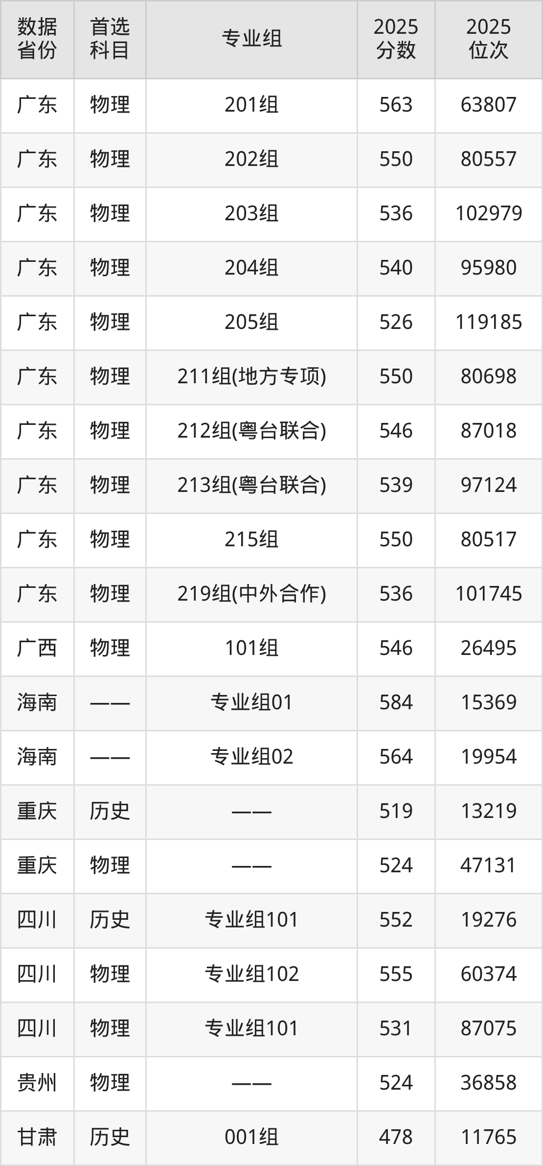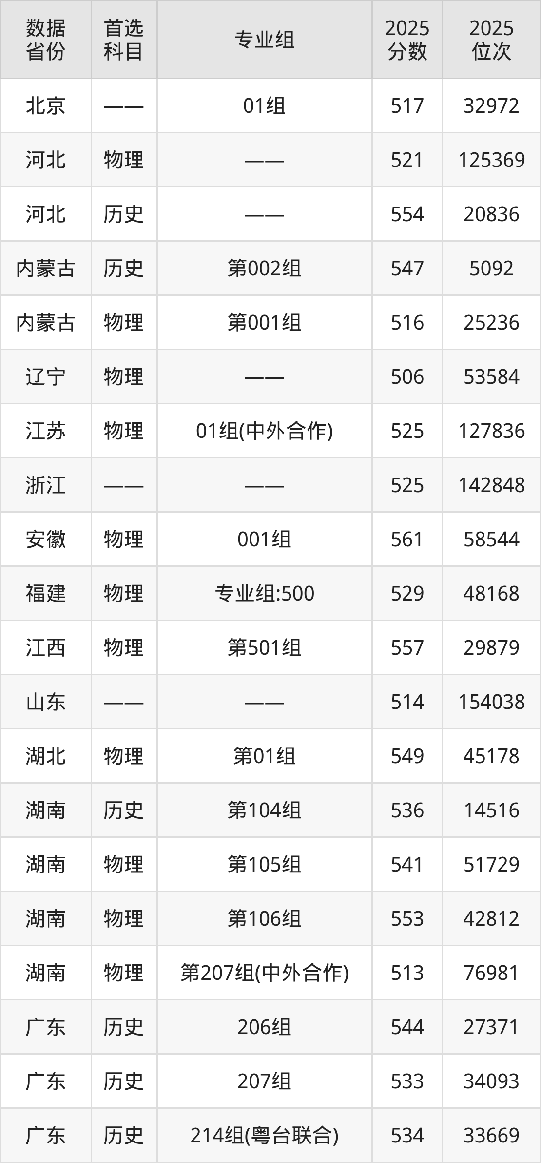 下面是东莞理工学院各省最低分汇总,各专业组录取分数线可参考下方图片: