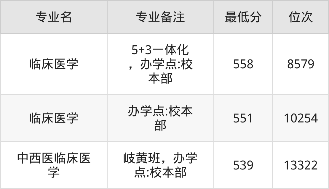 3、中西医临床医学(岐黄班,办学点:校本部):539分、位次13322名。
