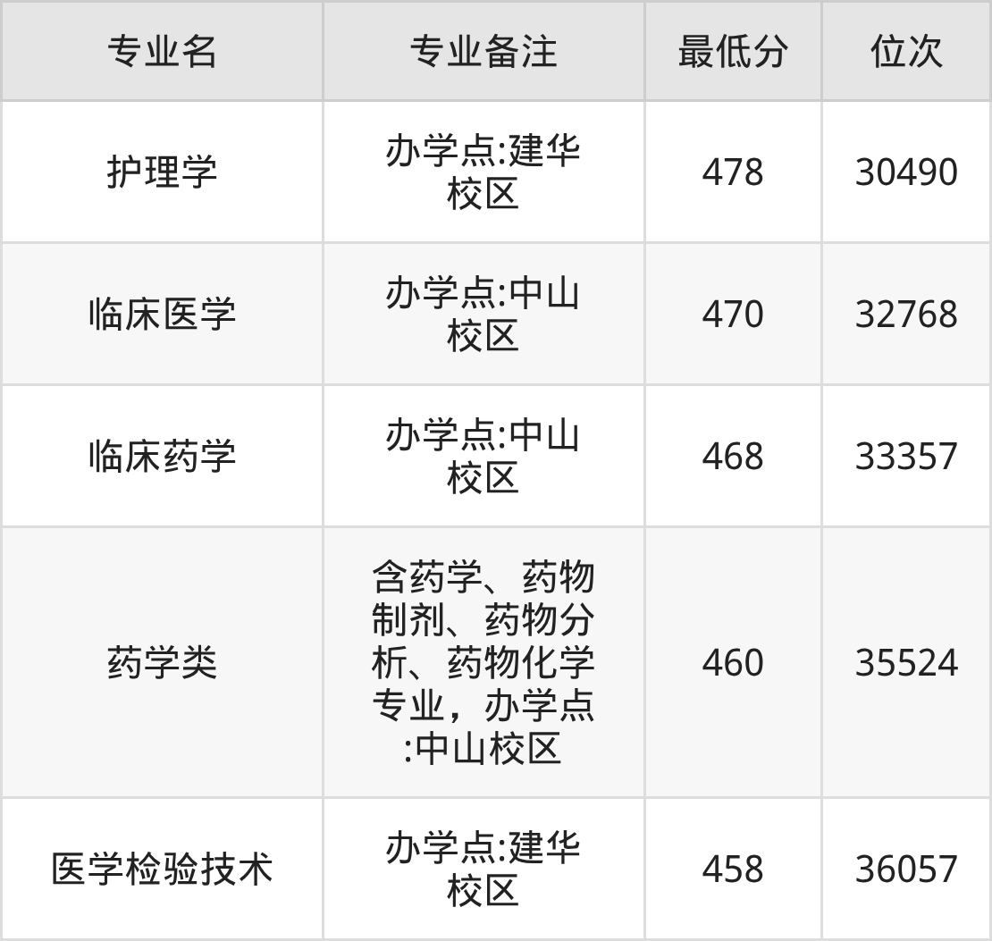 2、临床医学(办学点:中山校区):470分、位次32768名;