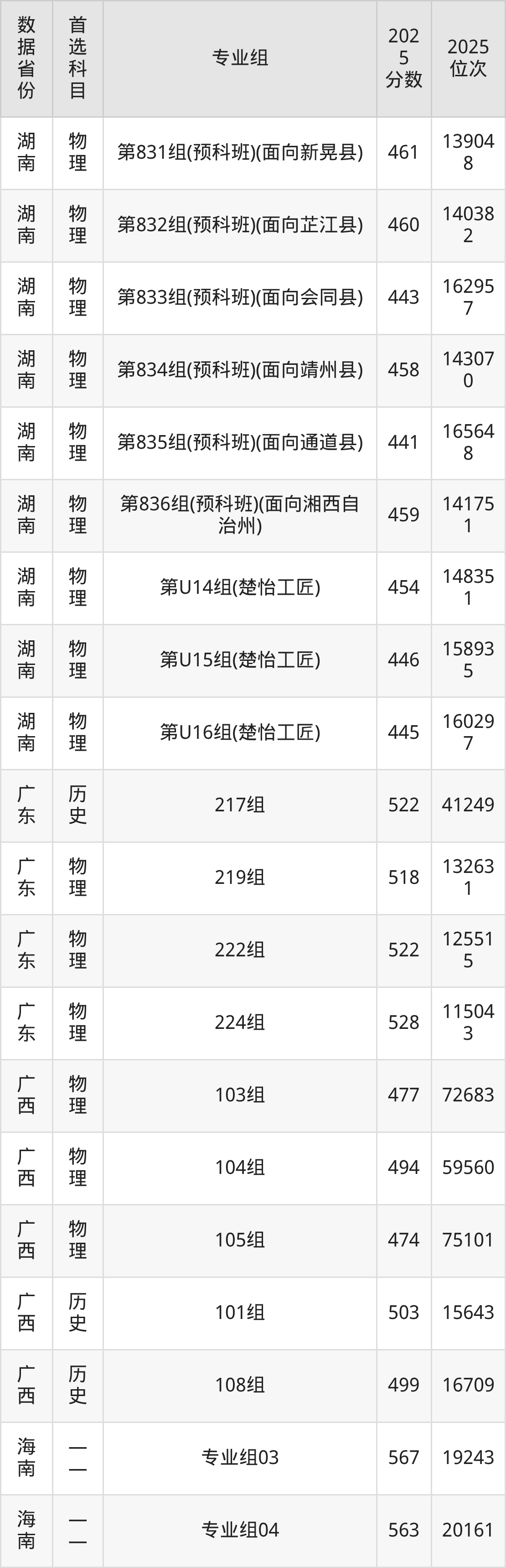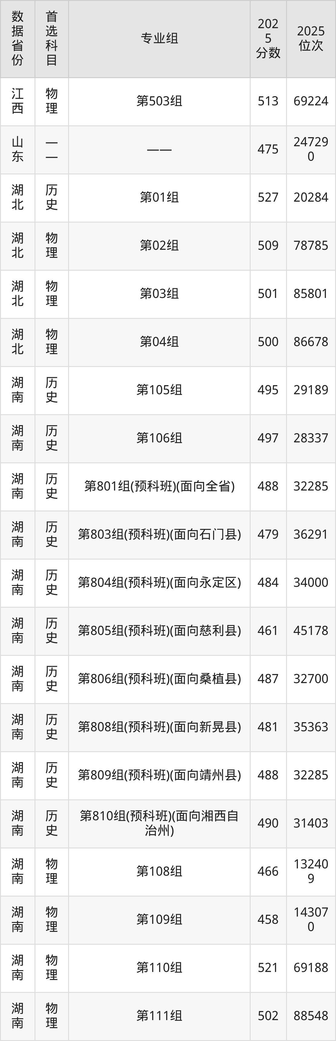 下面是湘南学院各省最低分汇总,各专业组录取分数线可参考下方图片: