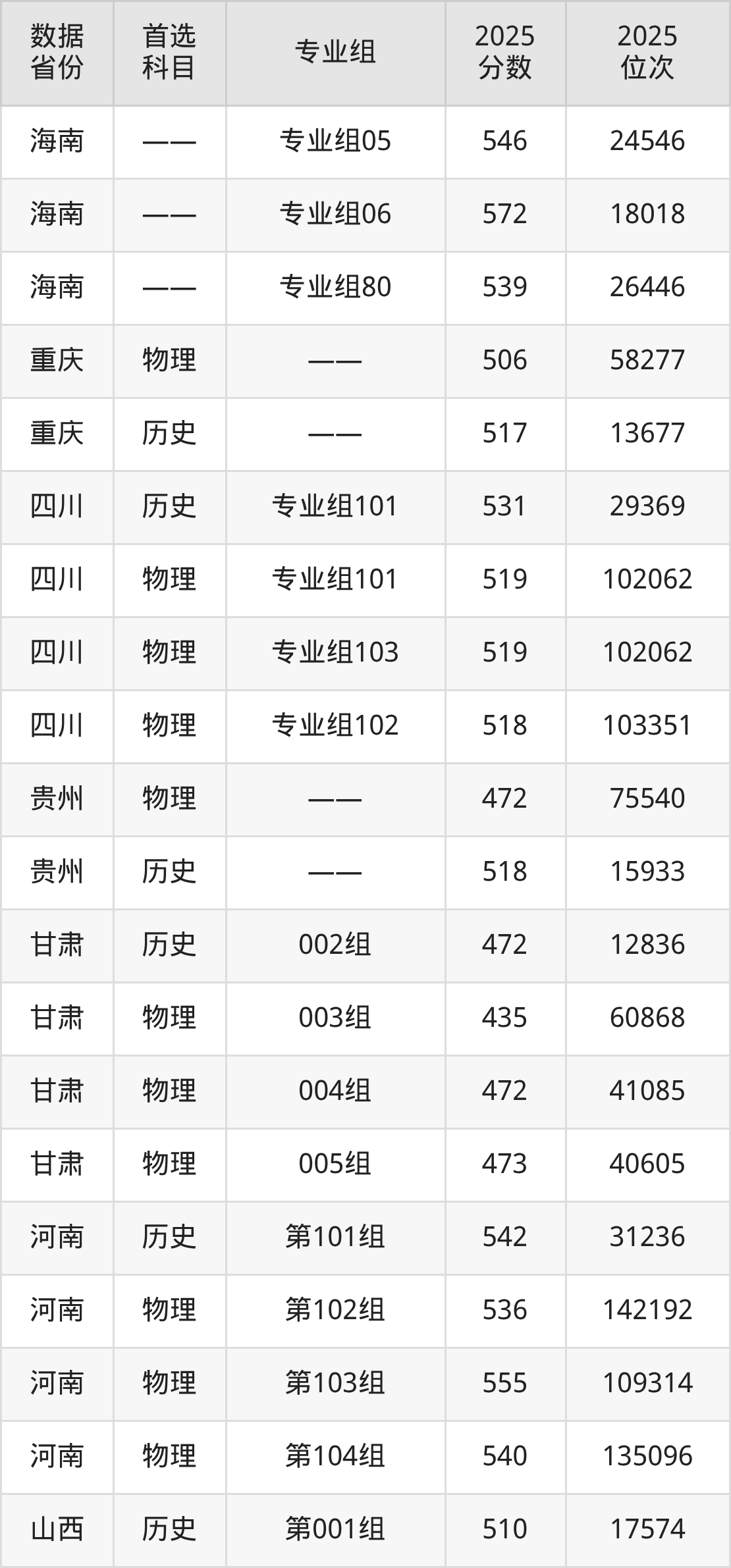 2025年湘南学院全国录取分数线最低是378分,最高是572分,平均分在486分左右。在多数地区录取最低分均超过410分。低于410分能上的地区只有湖南和吉林,高于平均值较多的是河南、海南、江西和河北等地,均有专业组最低分在534分及以上。