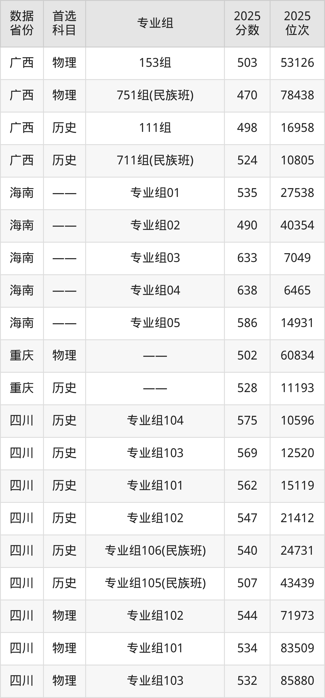 | 物理 | 电子信息工程 | 地方专项计划 | 6 |