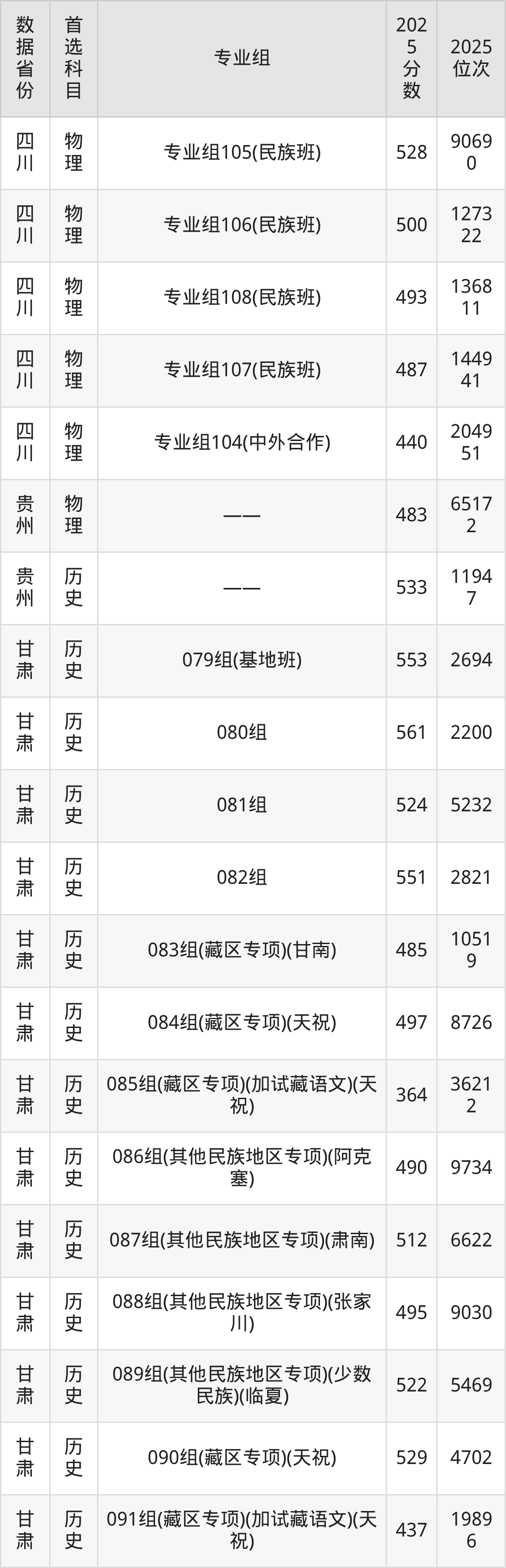 | 物理 | 社会学类 | 地方专项计划 | 4 |