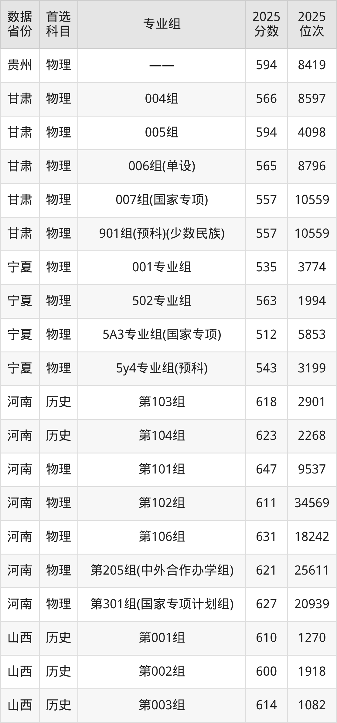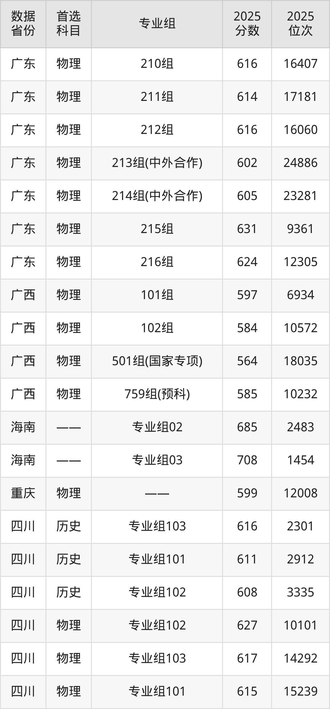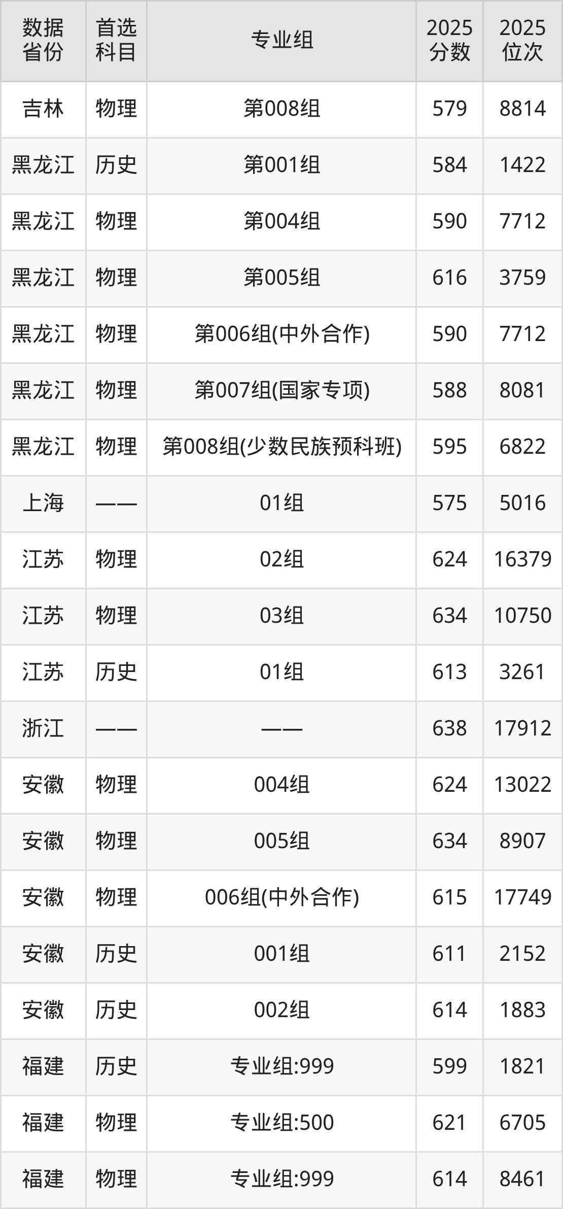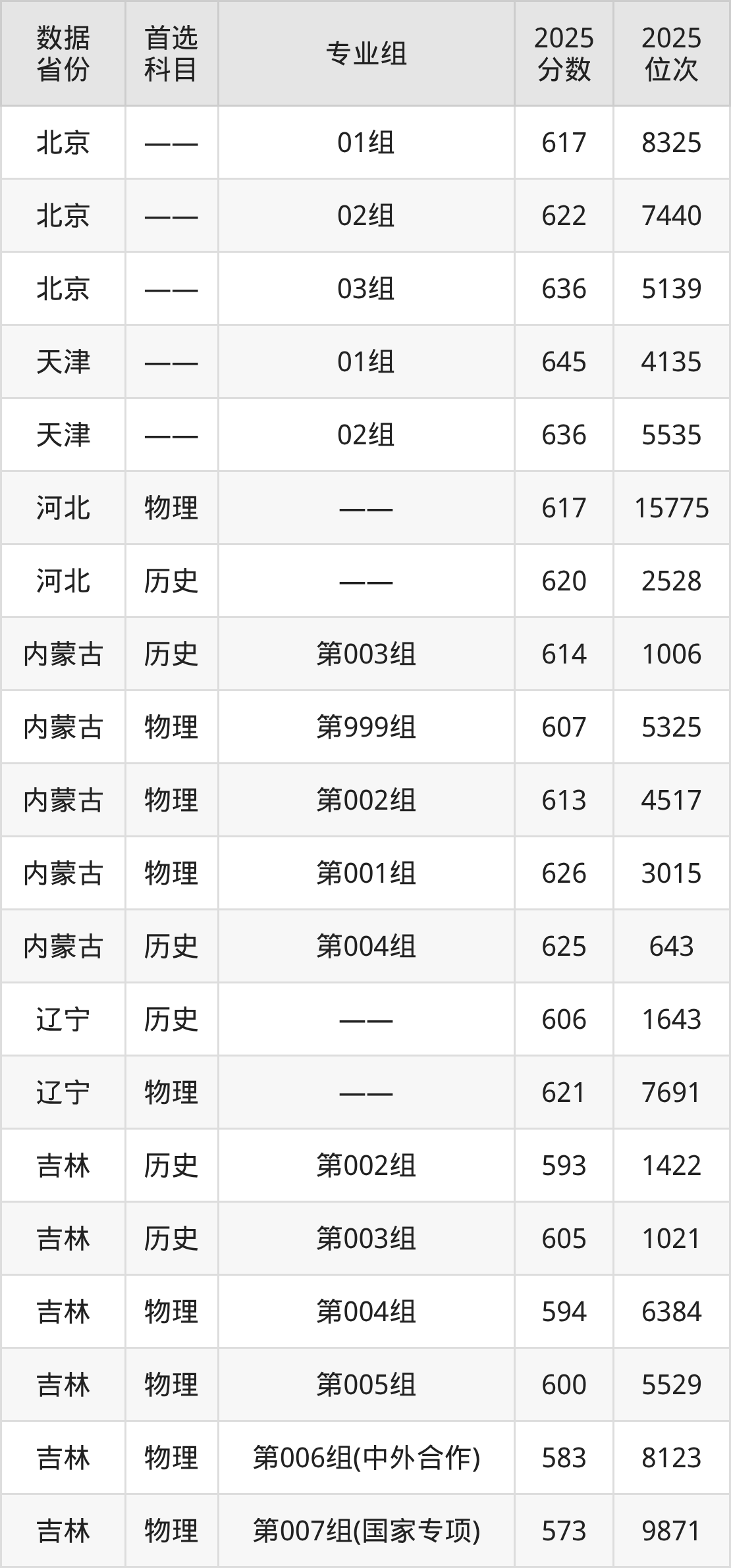 下面是东北大学各省最低分汇总,各专业组录取分数线可参考下方图片: