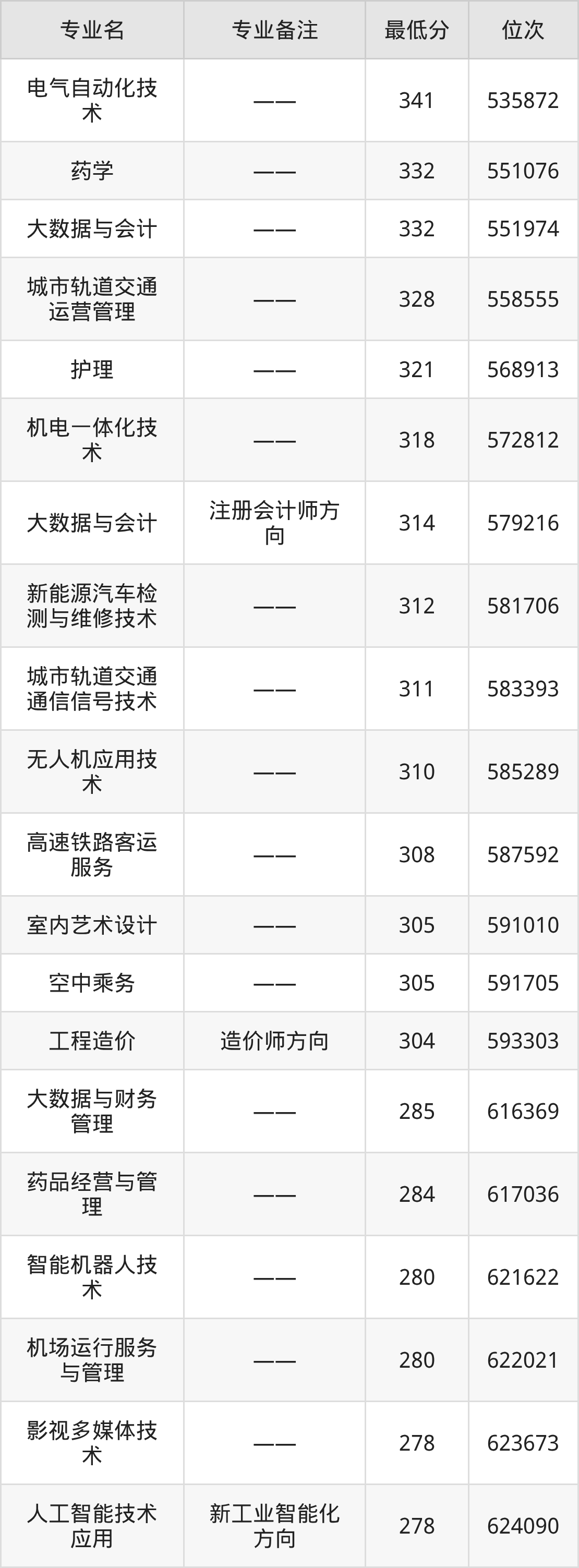 1、电气自动化技术:341分、位次535872名;