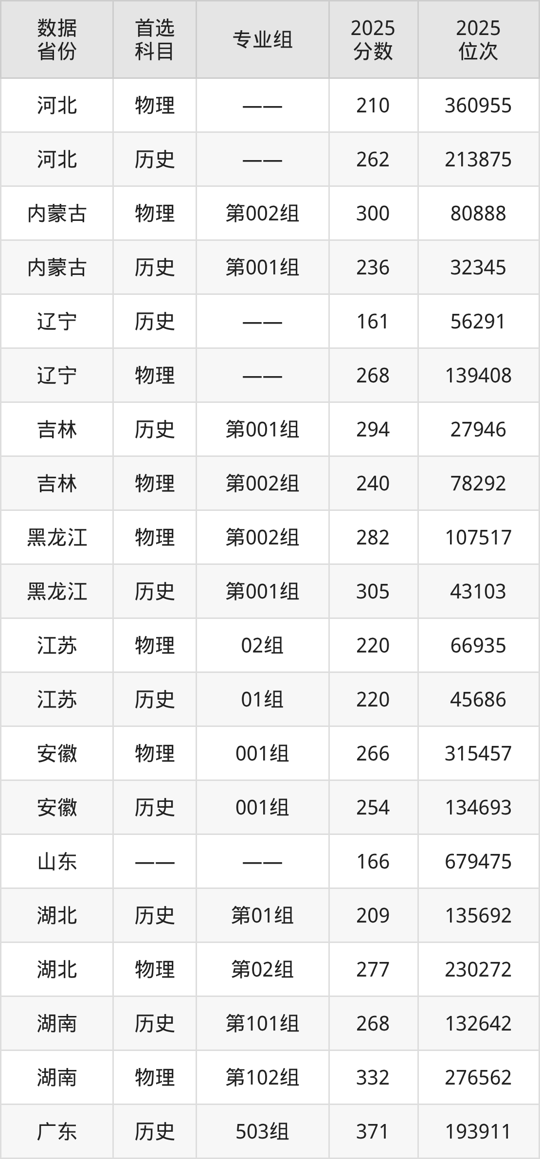 吉林:历史组294分、物理组240分;