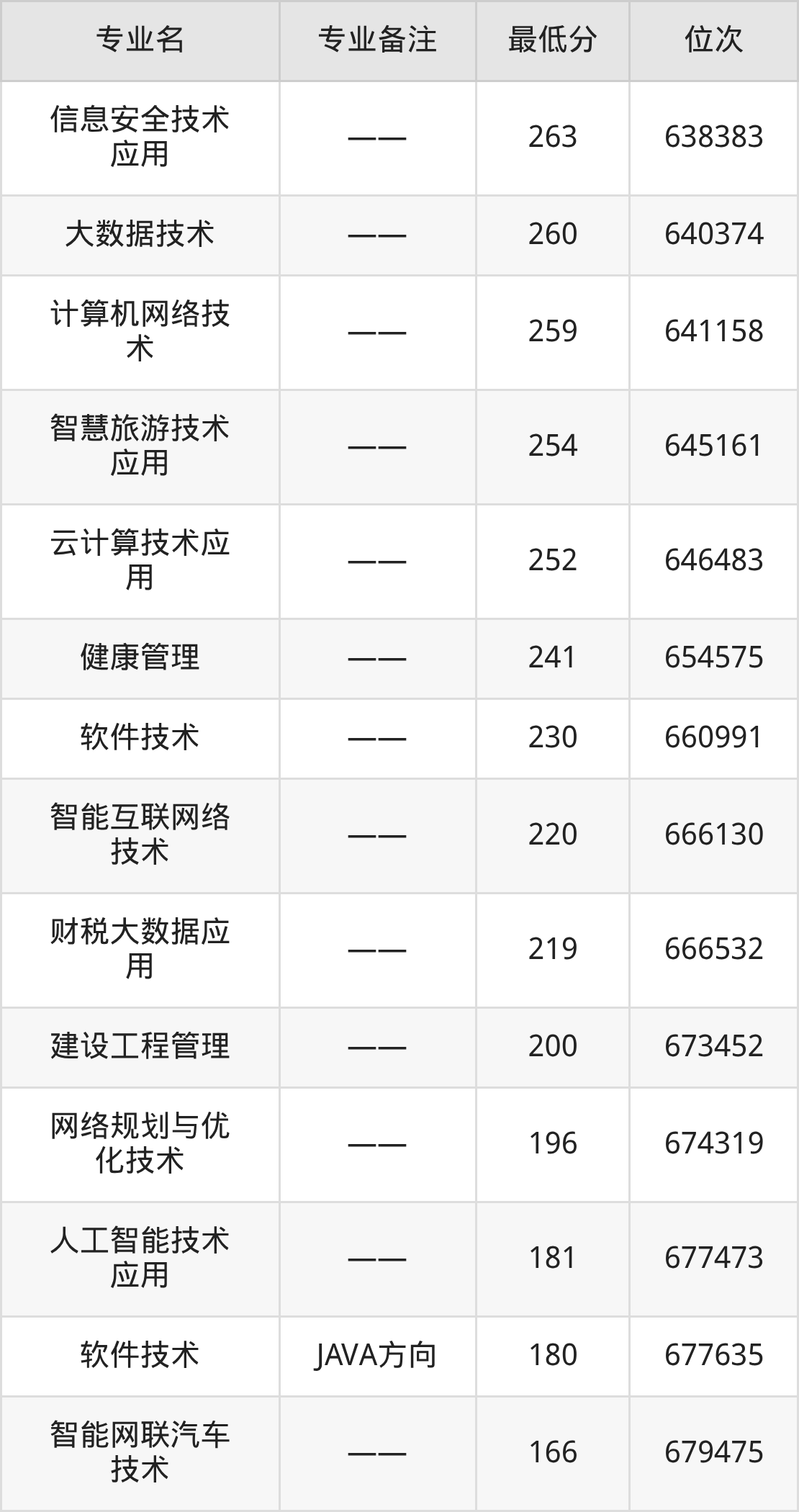 | 物理 | 软件技术 | JAVA方向 | 10 |