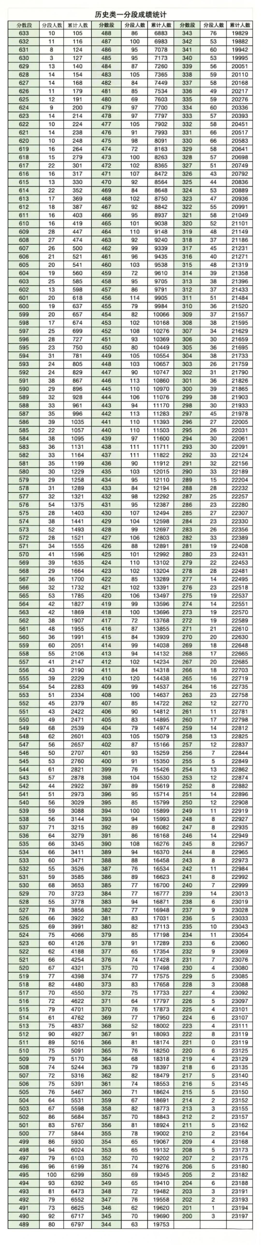 文科一分一段表: