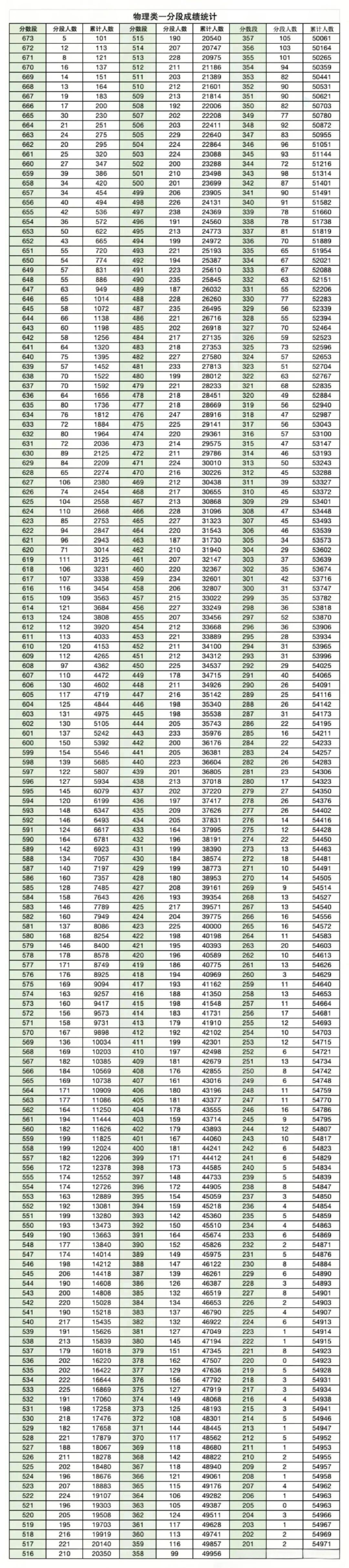 理科一分一段表