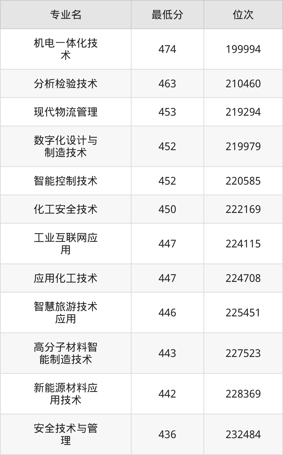 1、机电一体化技术:474分、位次199994名;