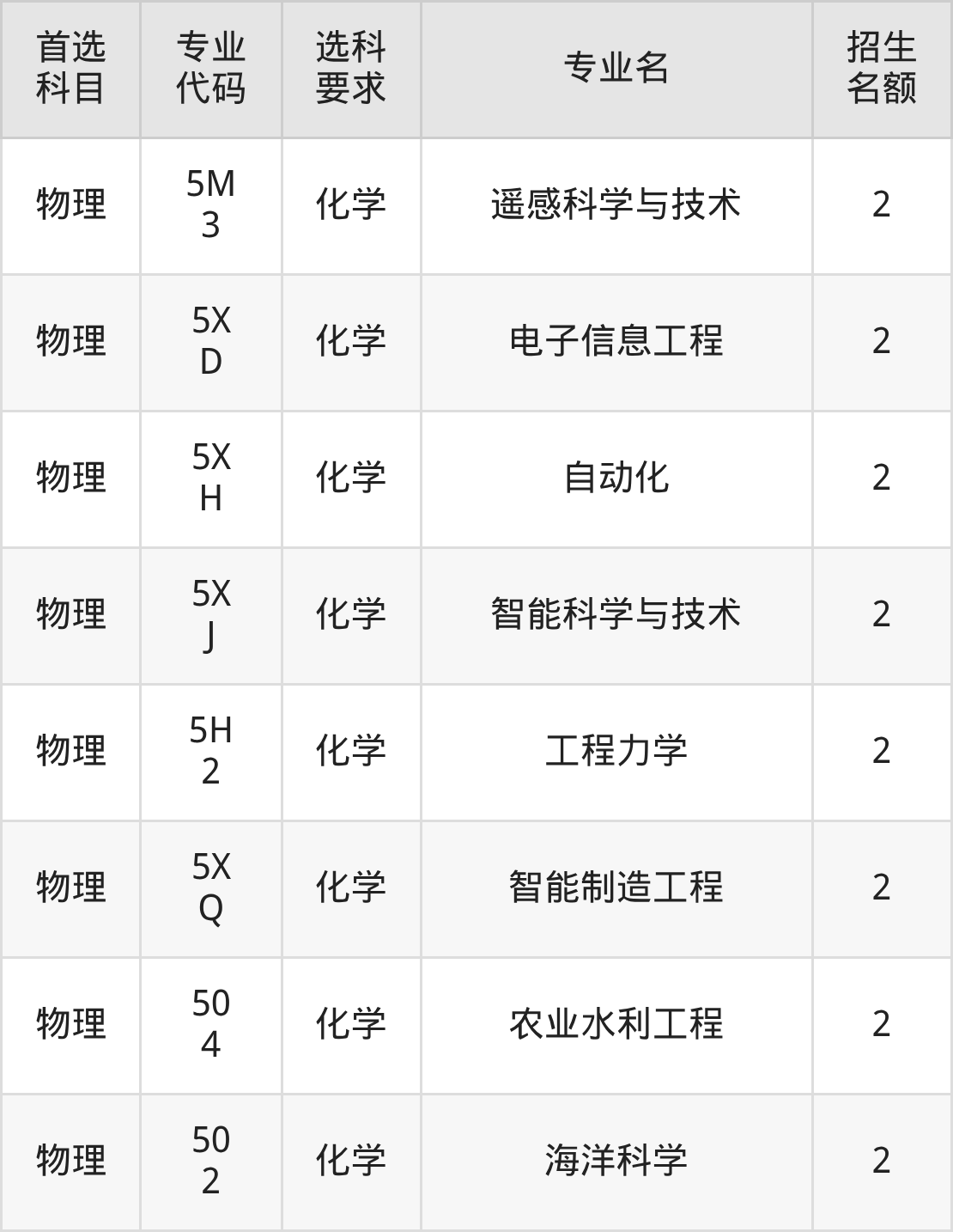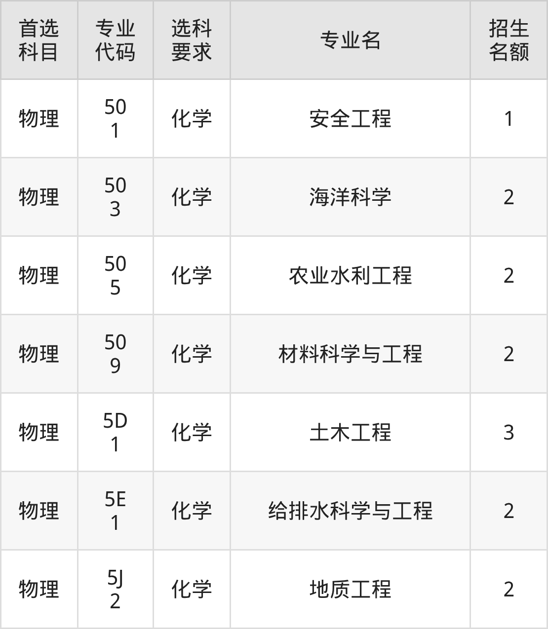 各专业选科要求、招生名额汇总如下: