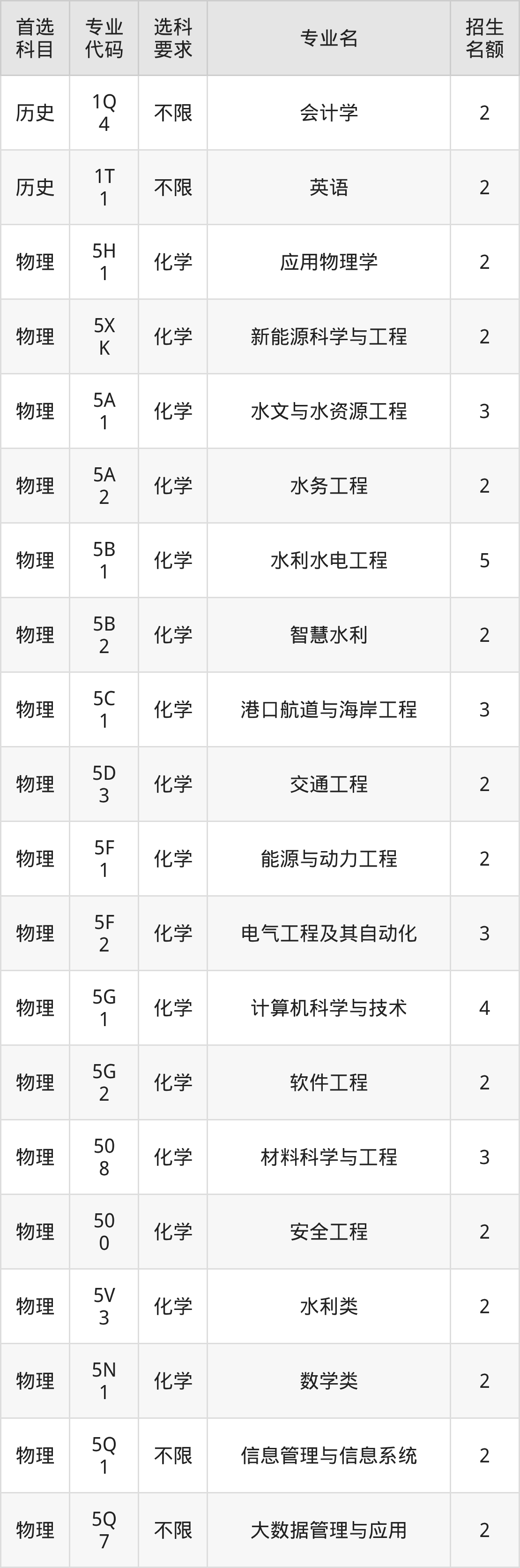 二、河海大学在重庆招生计划及专业