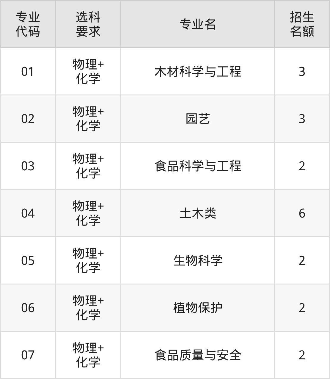 各专业选科要求、招生名额汇总如下: