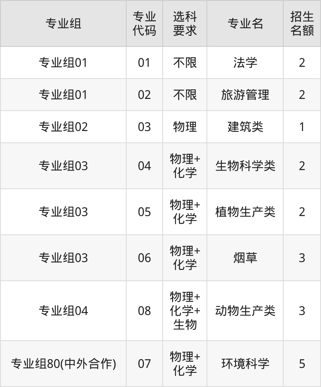 各专业选科要求、招生名额汇总如下: