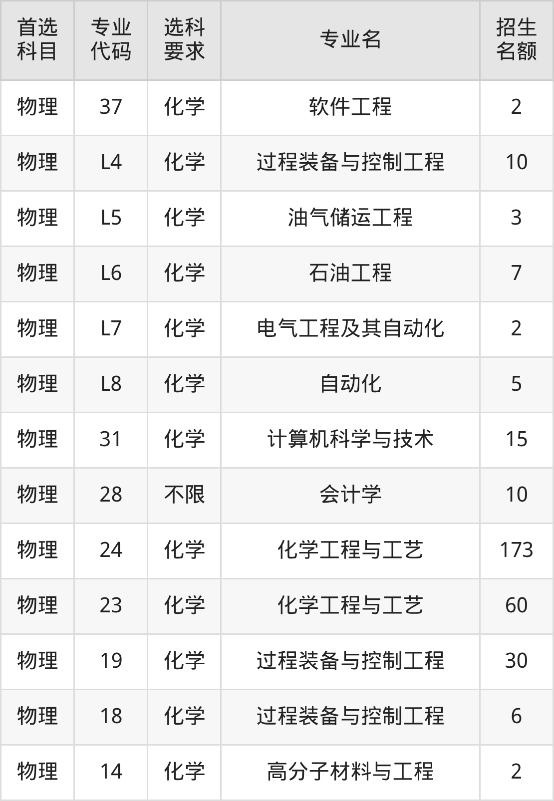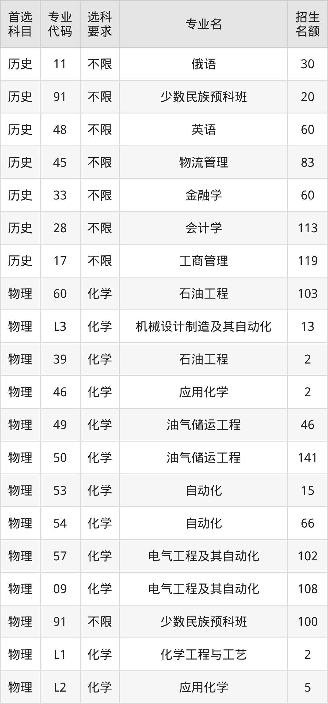 二、辽宁石油化工大学在辽宁招生计划及专业