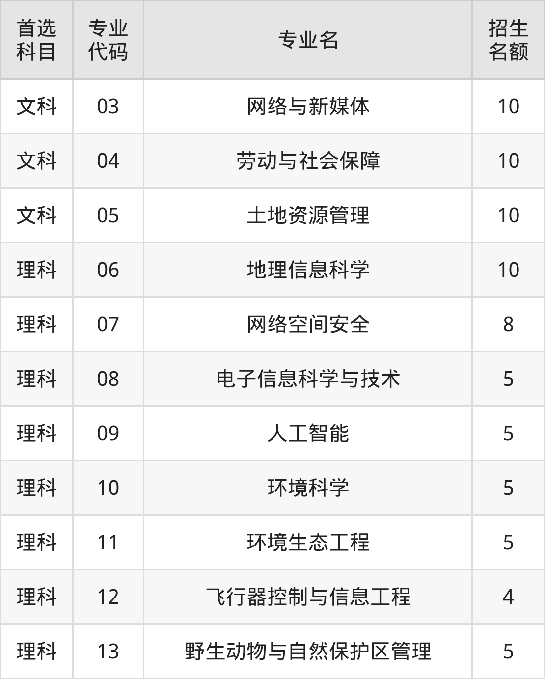 2025年西华师范大学在新疆维吾尔自治区本科二批招生中,总计划人数为77人,招生专业有11个,包括网络与新媒体(10人)、劳动与社会保障(10人)、土地资源管理(10人)、地理信息科学(10人)等。
