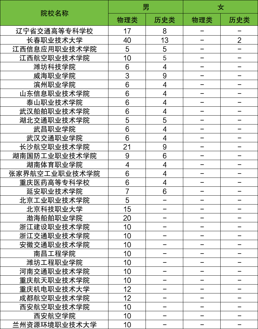 历史类:最低分330分,招生性别为男;