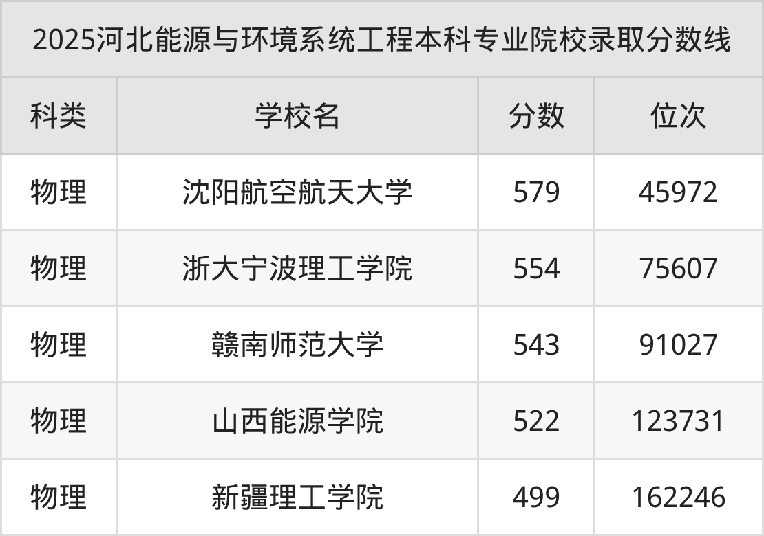 1、沈阳航空航天大学:能源与环境系统工程579分、物理类位次45972名;