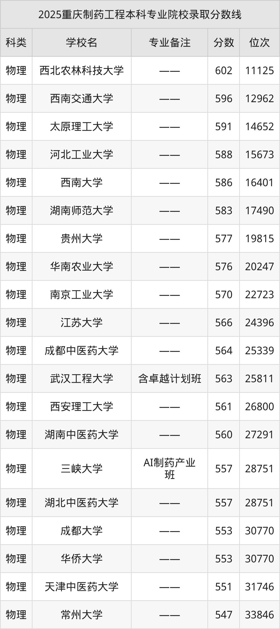 1、西北农林科技大学:制药工程602分、物理类位次11125名;