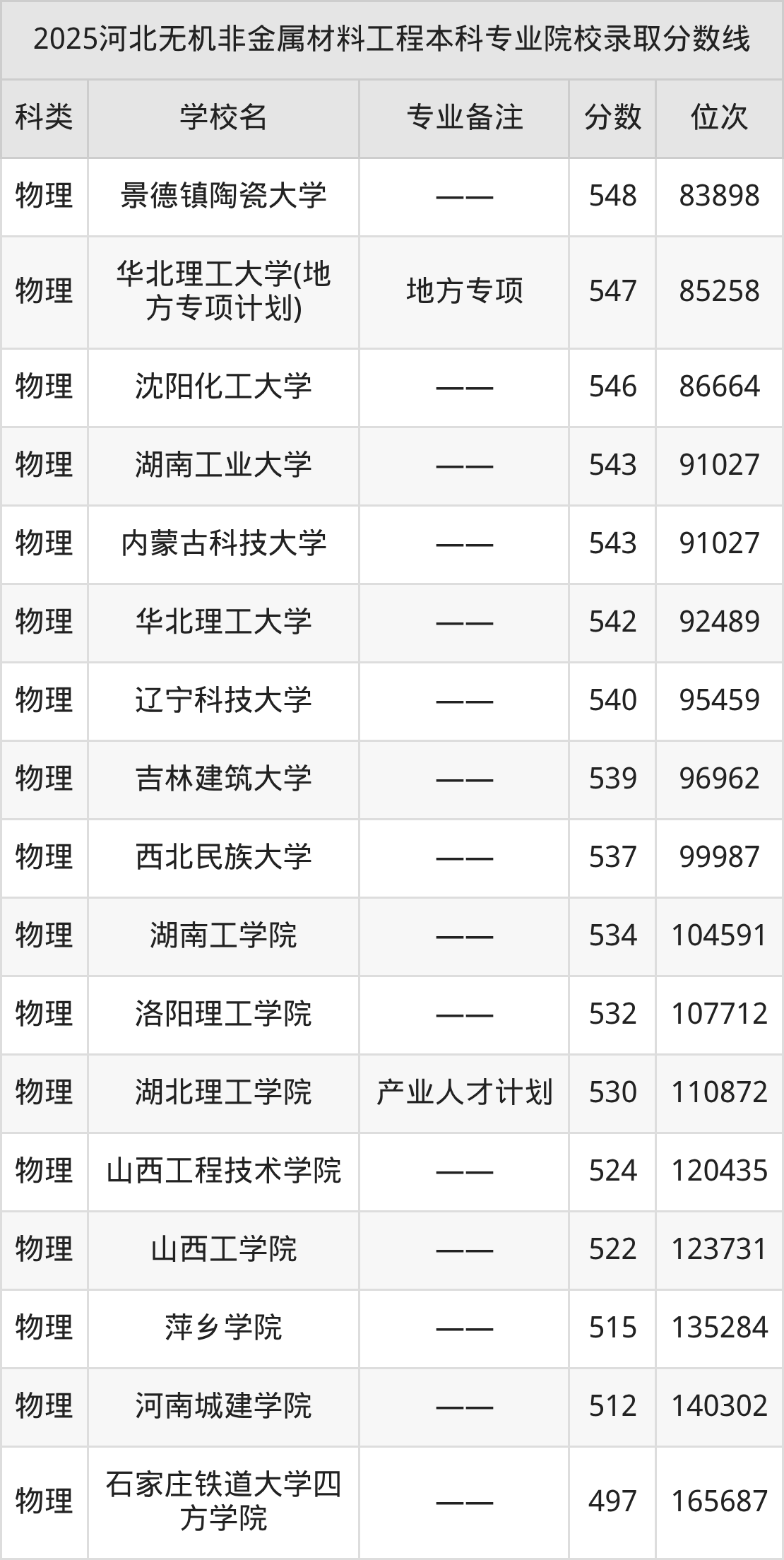 2025年河北无机非金属材料工程分数线排名前5的大学名单(本科最难报考):