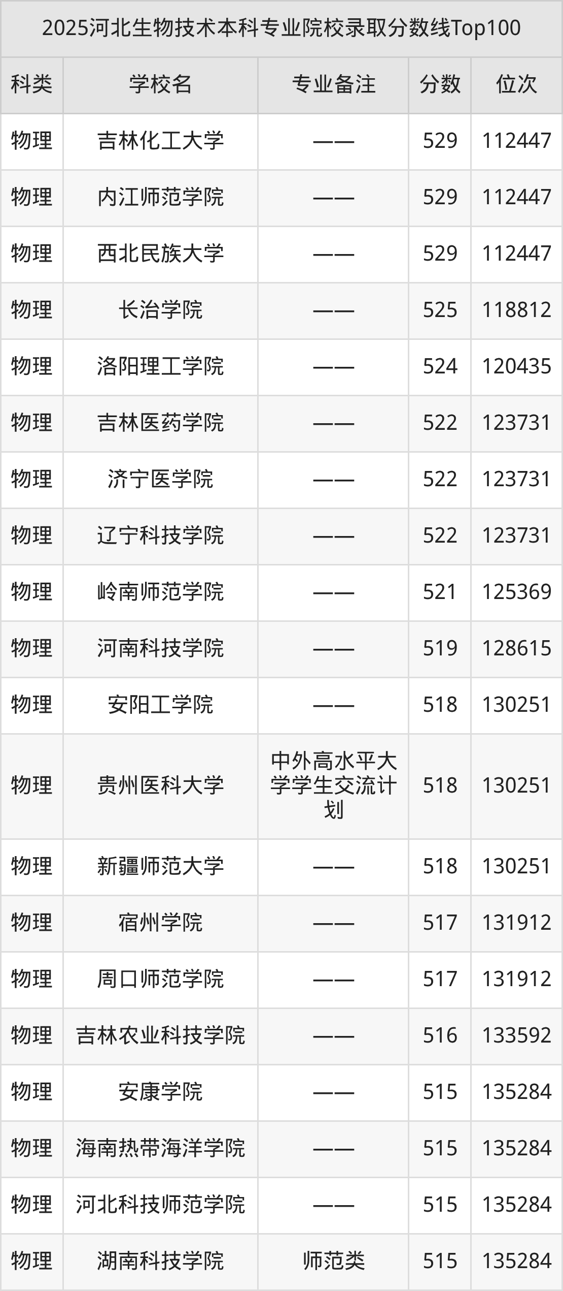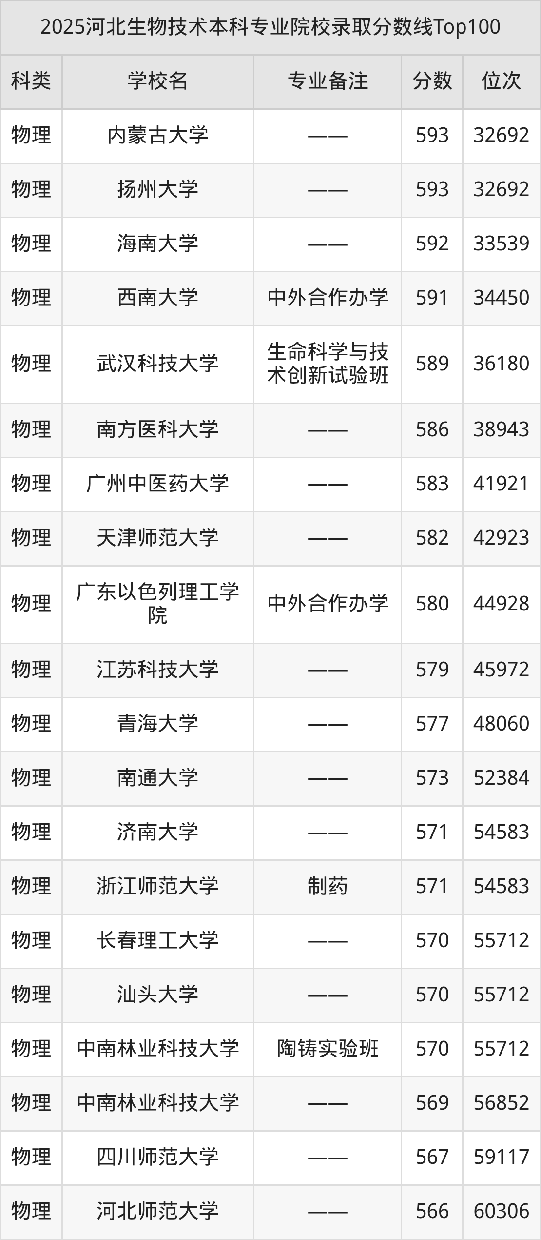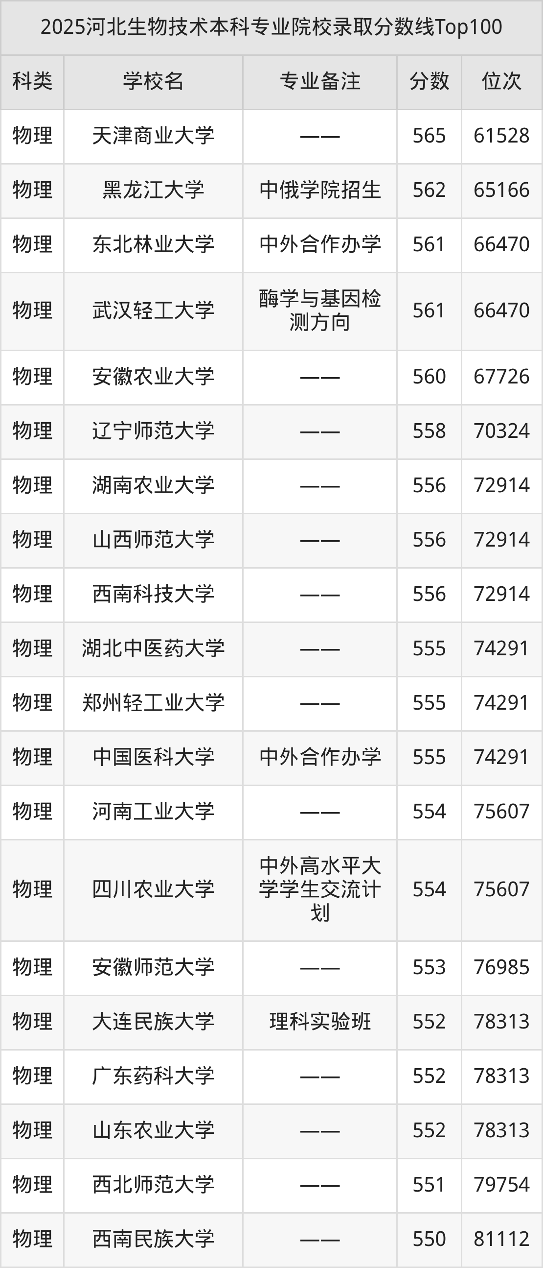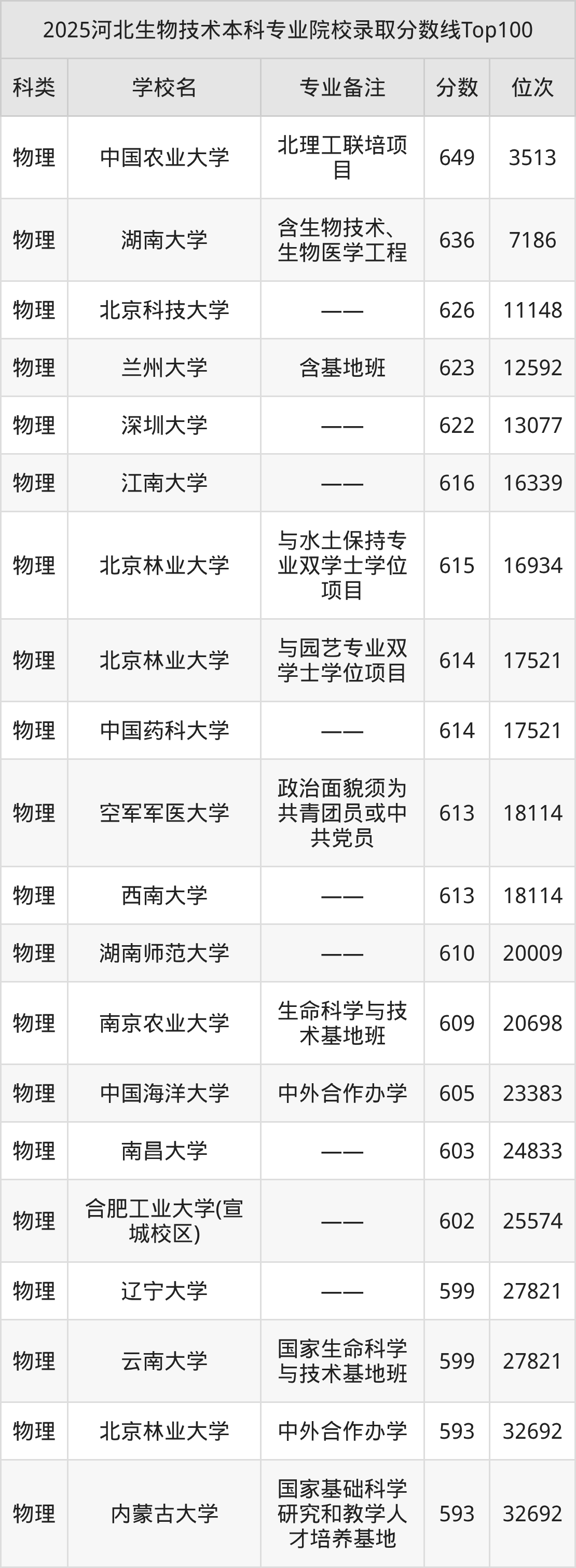 2025年河北生物技术分数线排名前5的大学名单(本科最难报考):