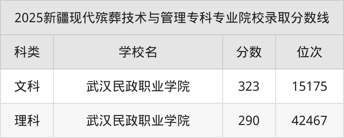 2025年新疆现代殡葬技术与管理分数线排名前2的大学名单(专科最难报考):