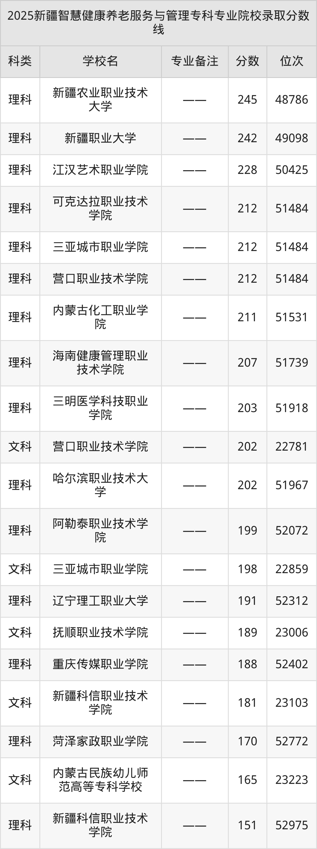 2025年新疆智慧健康养老服务与管理分数线排名前5的大学名单(专科最难报考):