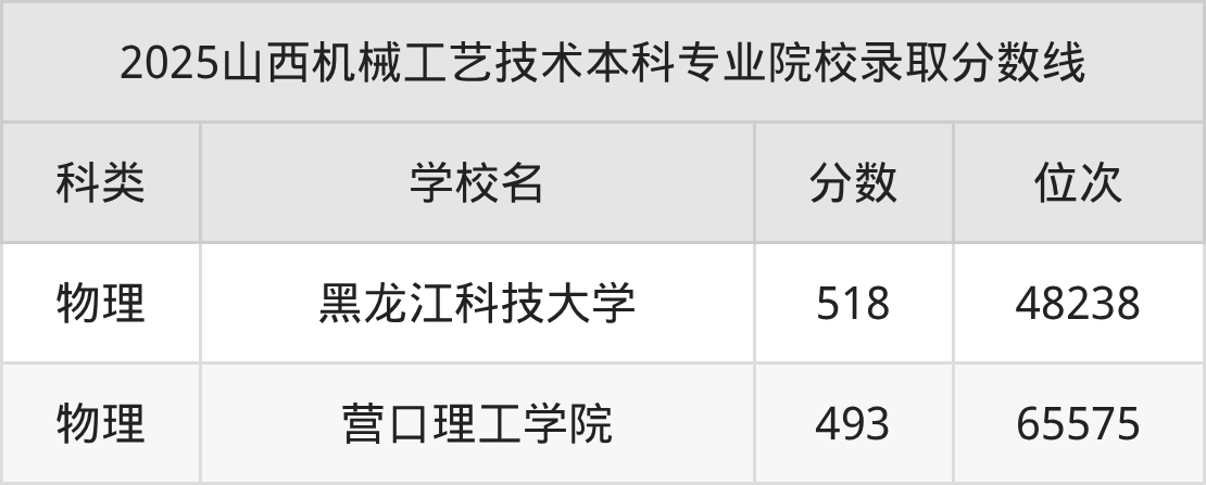 2025年山西机械工艺技术分数线排名前2的大学名单(本科最难报考):