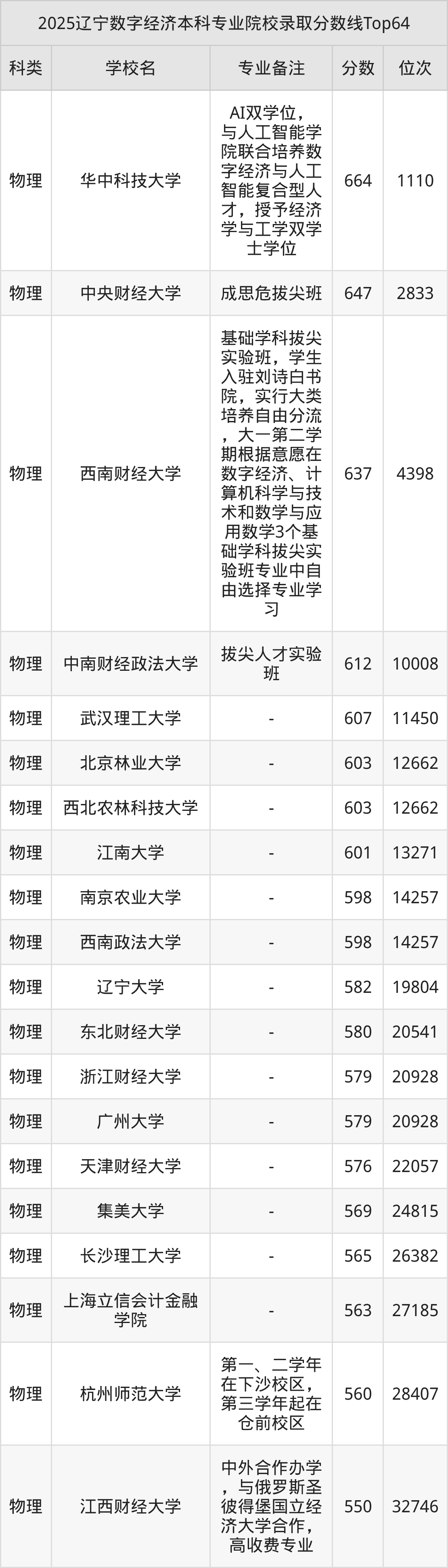 1、华中科技大学:数字经济(AI双学位,与人工智能学院联合培养数字经济与人工智能复合型人才,授予经济学与工学双学士学位)664分、物理类位次1110名;