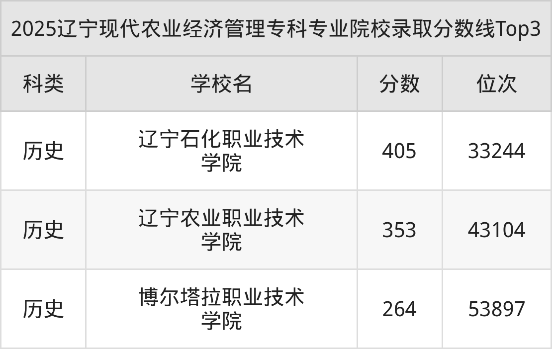 2025年辽宁现代农业经济管理分数线排名前3的大学名单(专科最难报考):