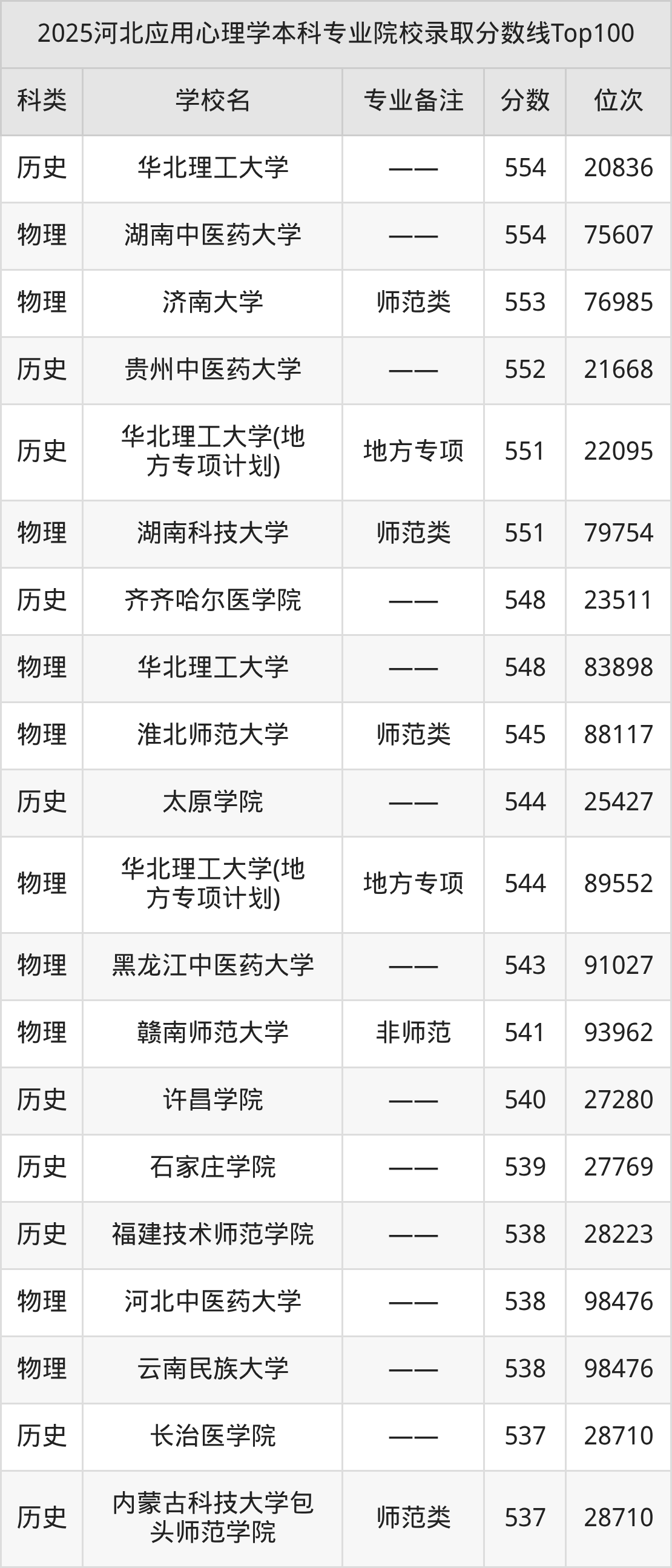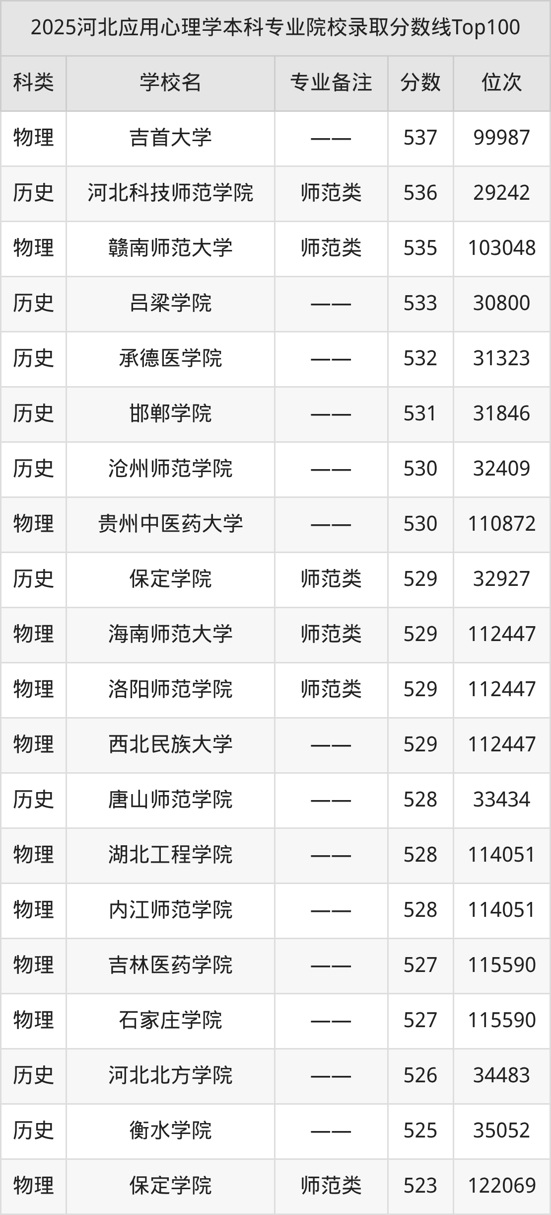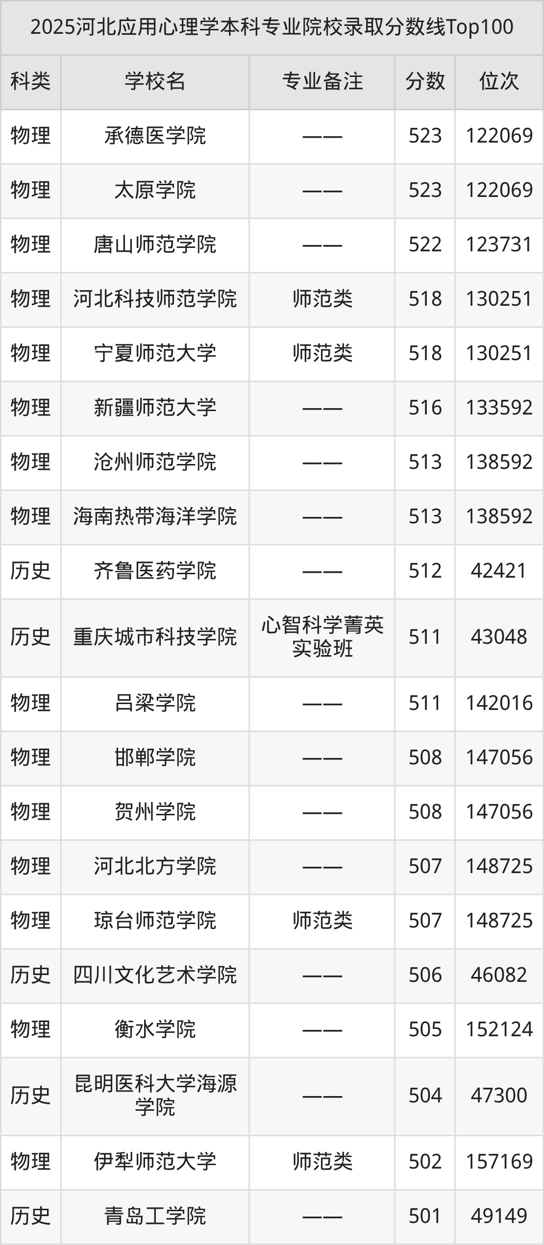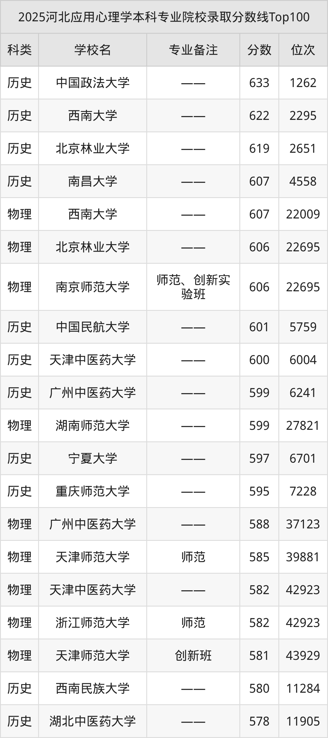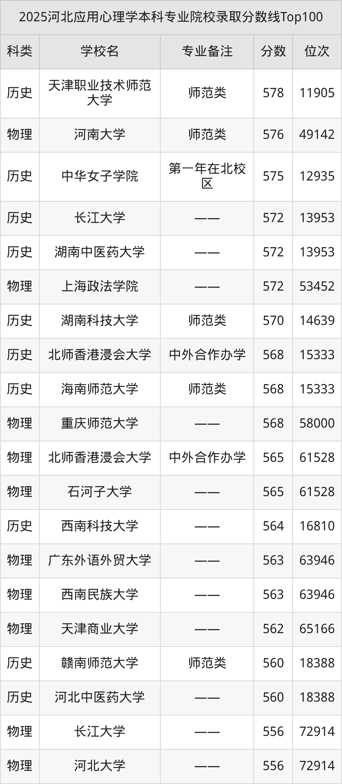 2025年河北应用心理学分数线排名前5的大学名单(本科最难报考):