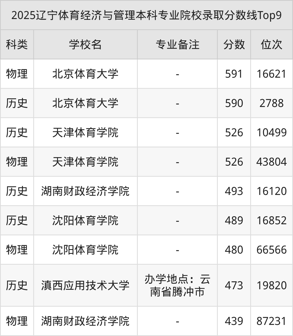 1、北京体育大学:体育经济与管理591分、物理类位次16621名;