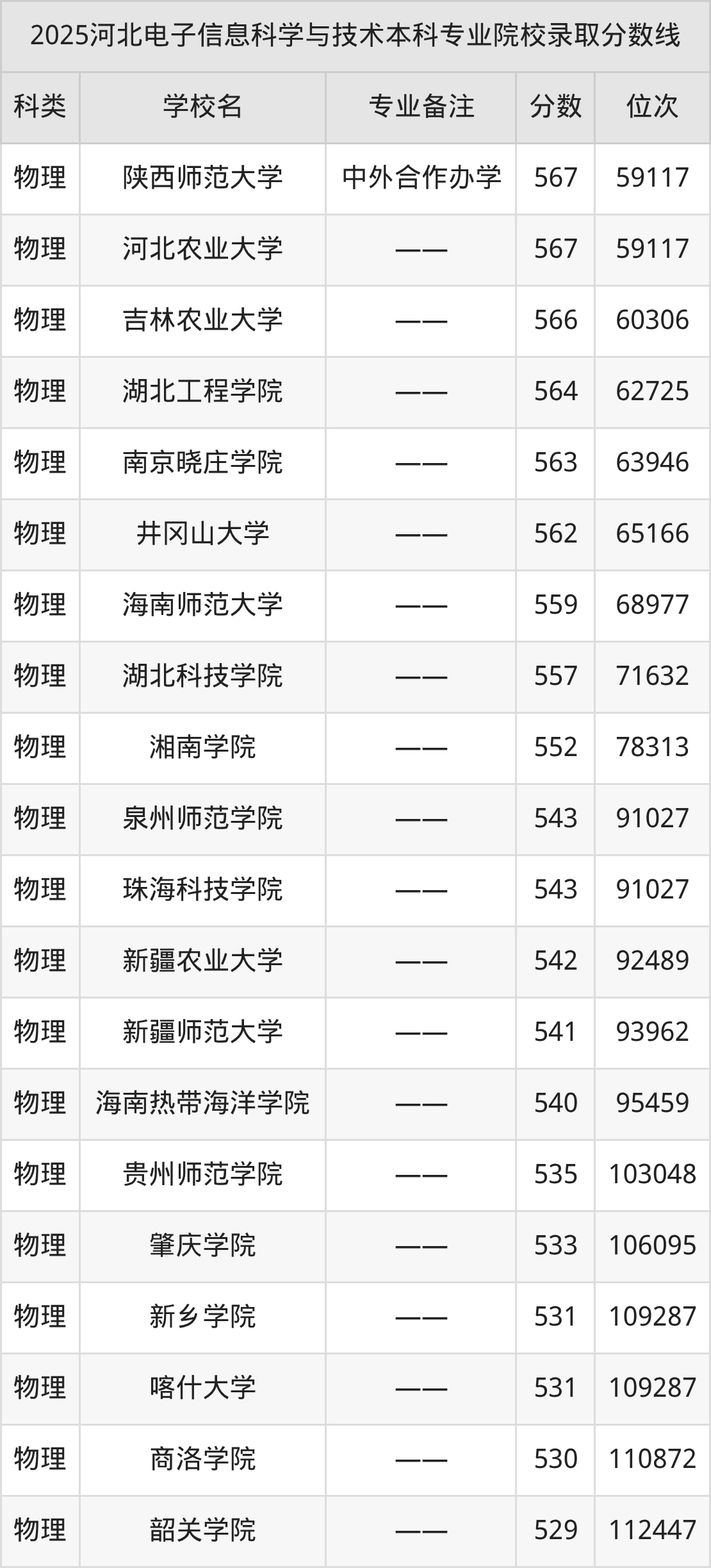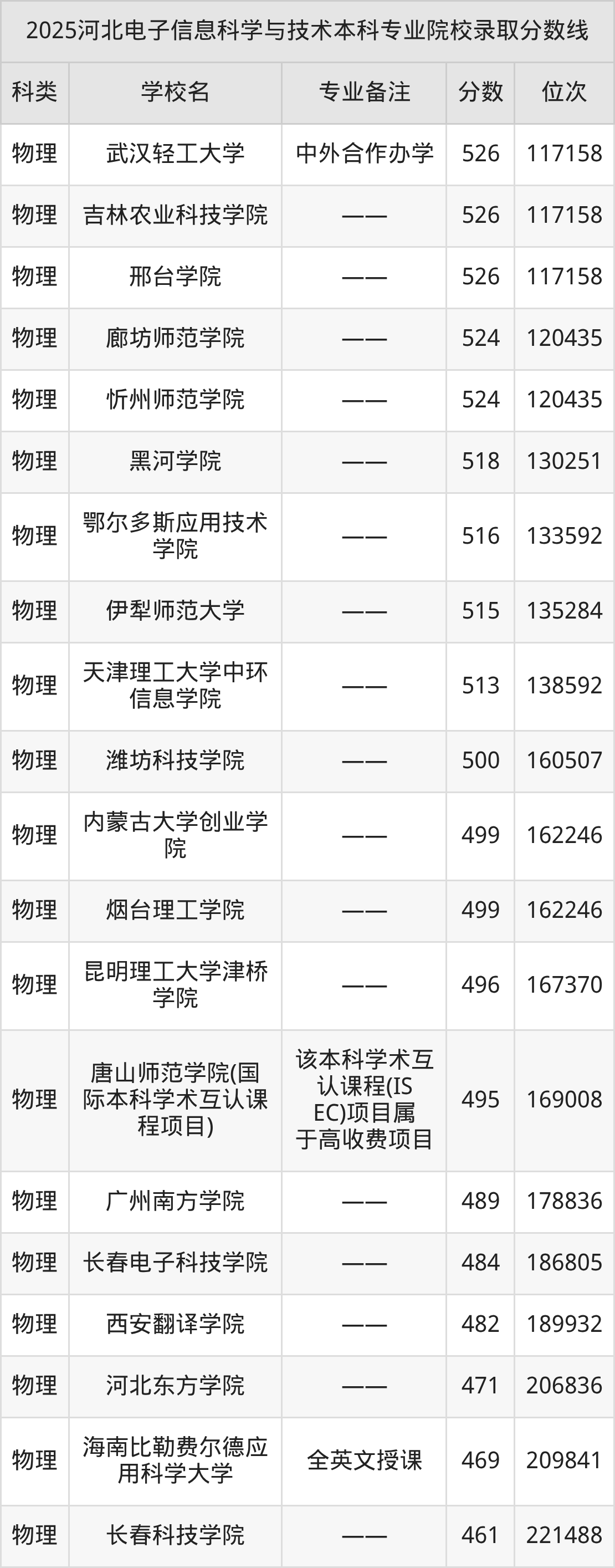 2025年河北电子信息科学与技术分数线排名前5的大学名单(本科最难报考):