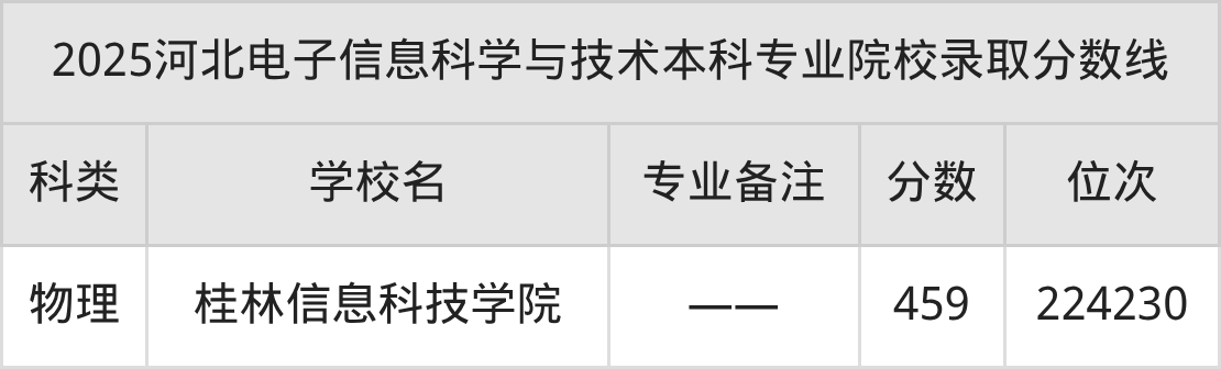 2025电子信息科学与技术专业在河北省录取分数线为:本科459分-641分。结合批次线来看,考生成绩达本科线即有机会就读电子信息科学与技术本科专业,低分录取的本科院校有桂林信息科技学院。2026届考生可在下文查阅更多院校名单、分数及排名信息。