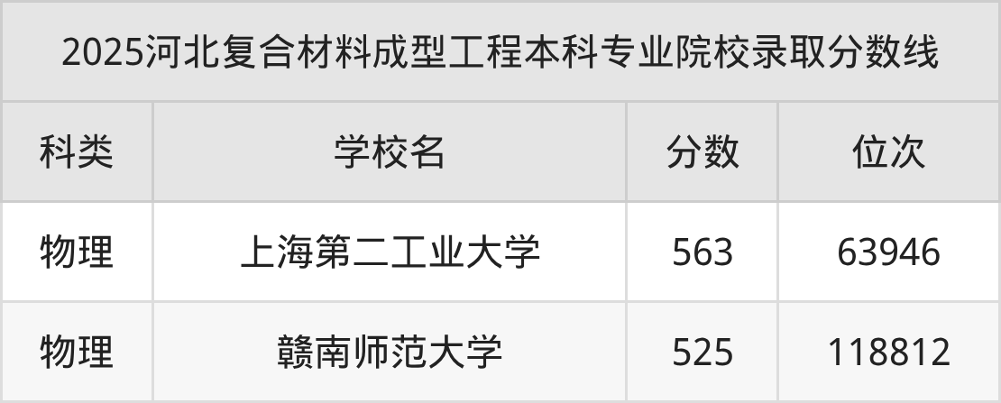 2025年河北复合材料成型工程分数线排名前2的大学名单(本科最难报考):