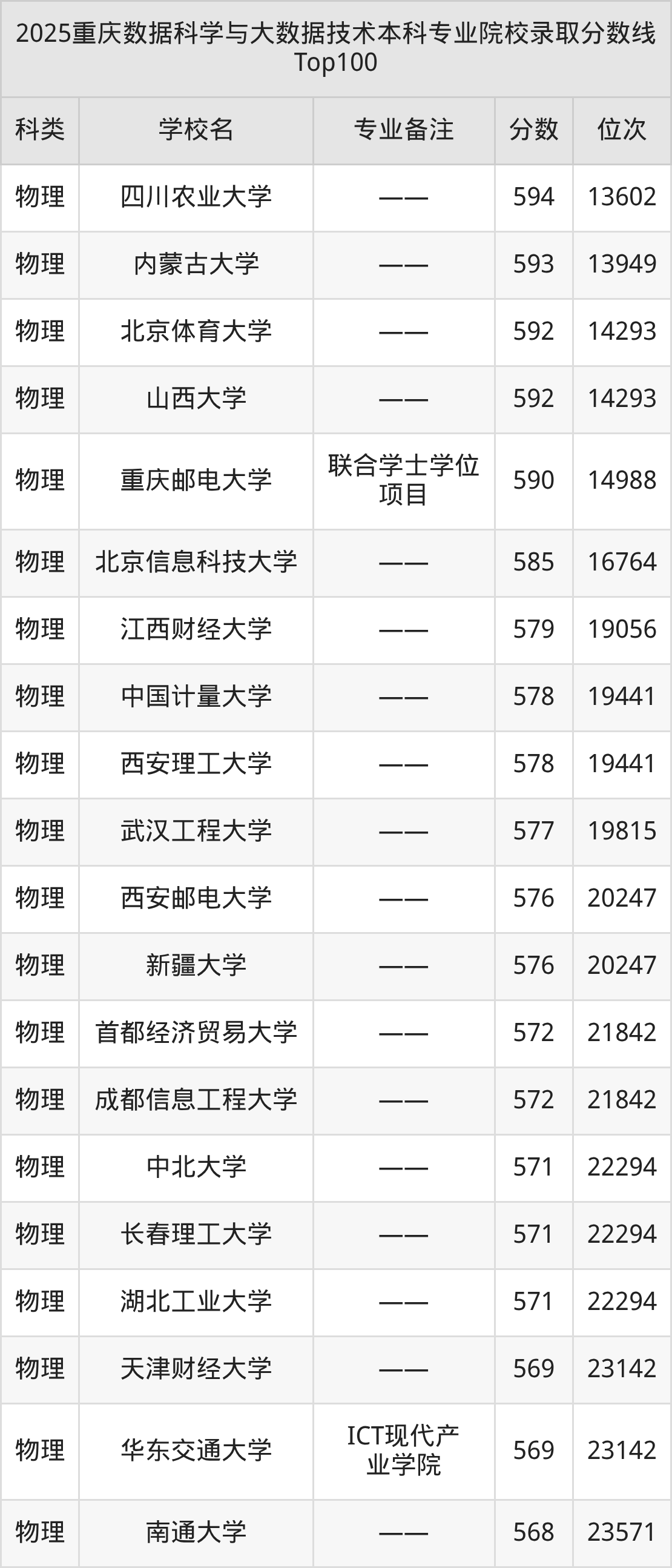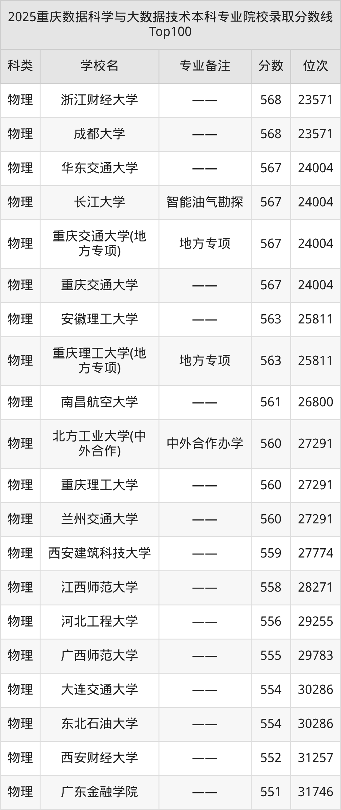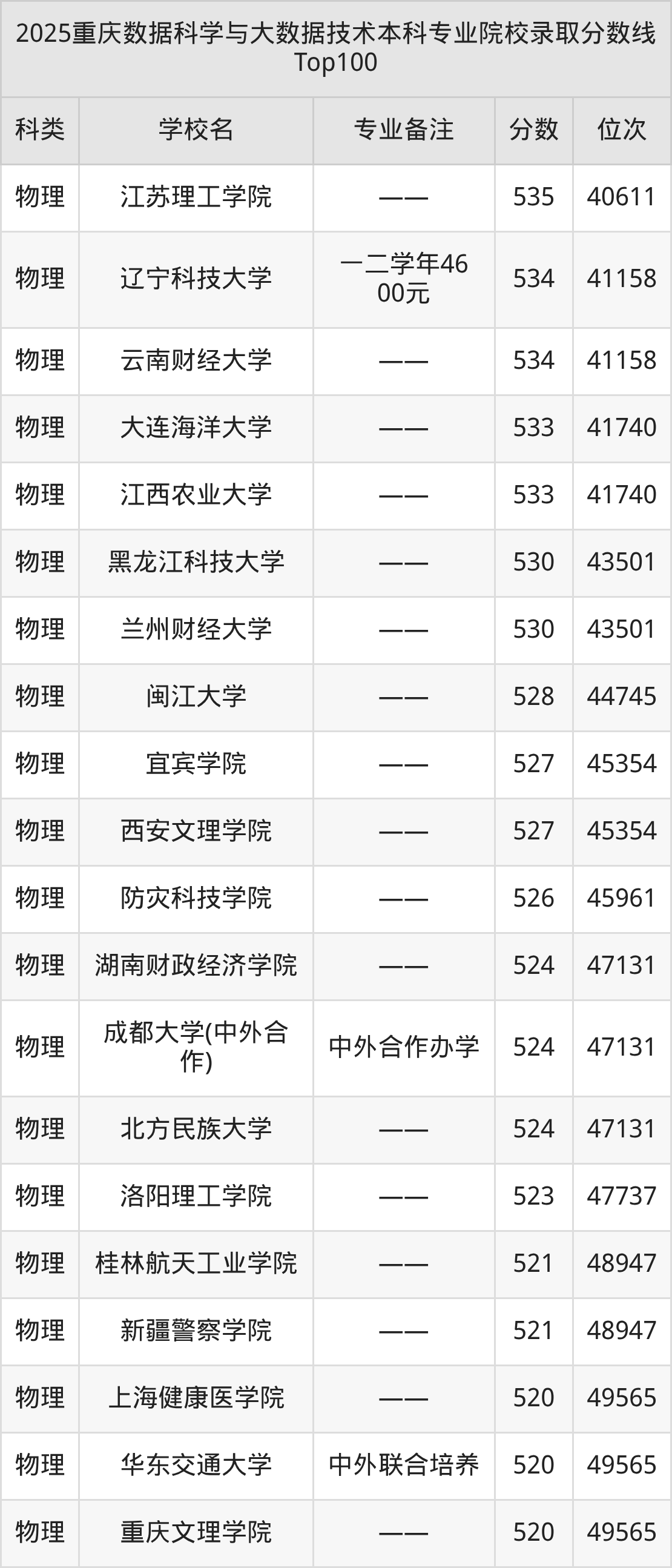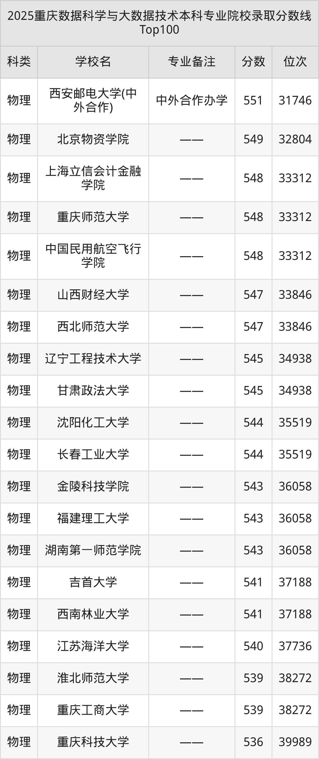 2025年重庆数据科学与大数据技术分数线排名前5的大学名单(本科最难报考):