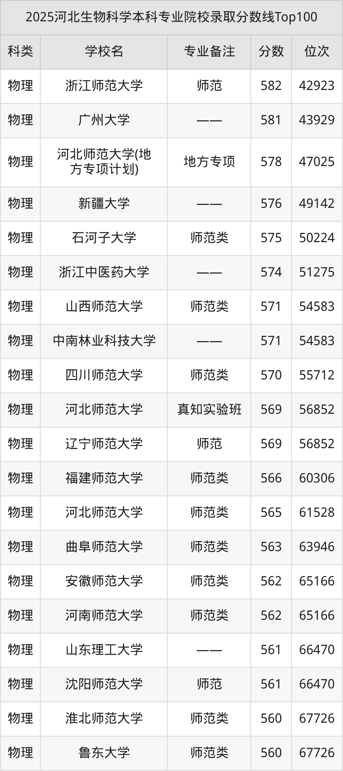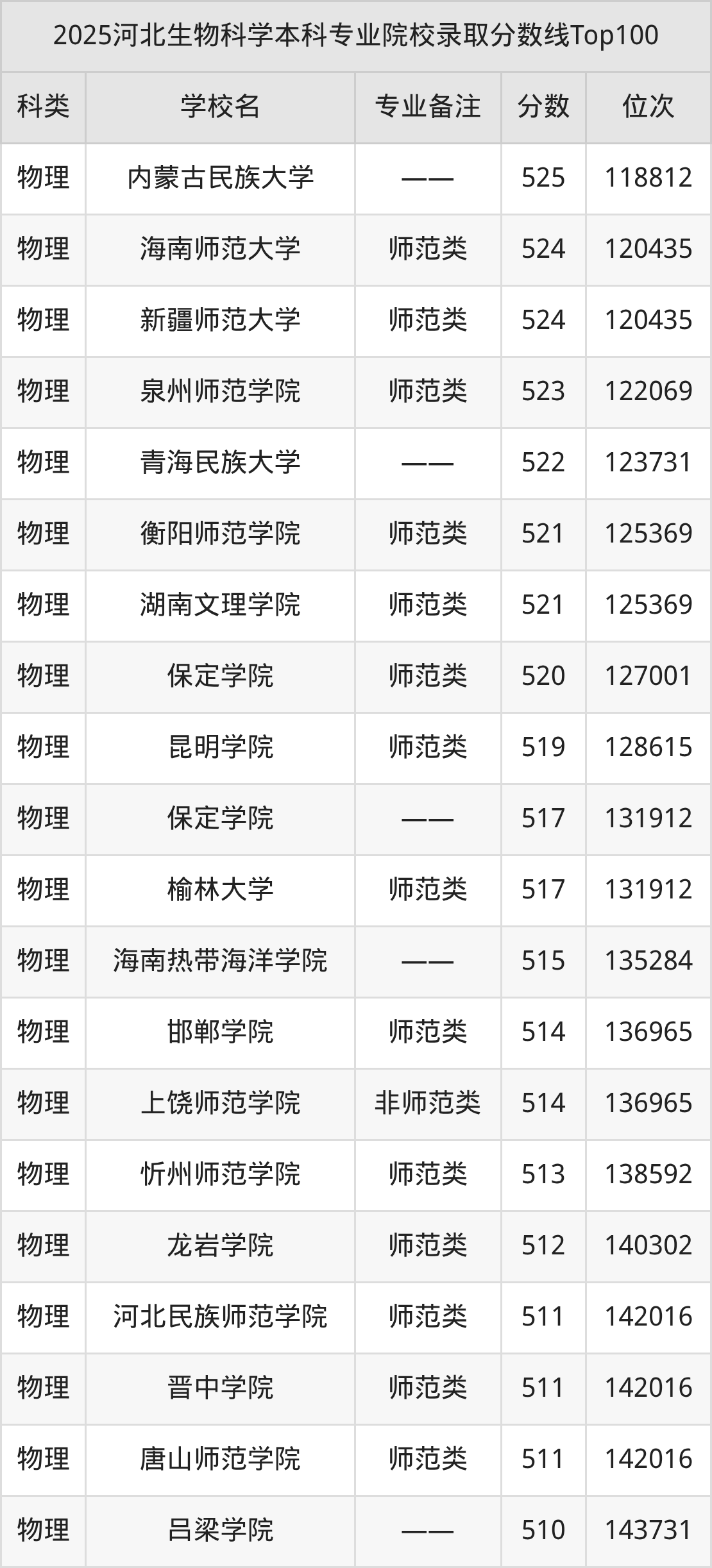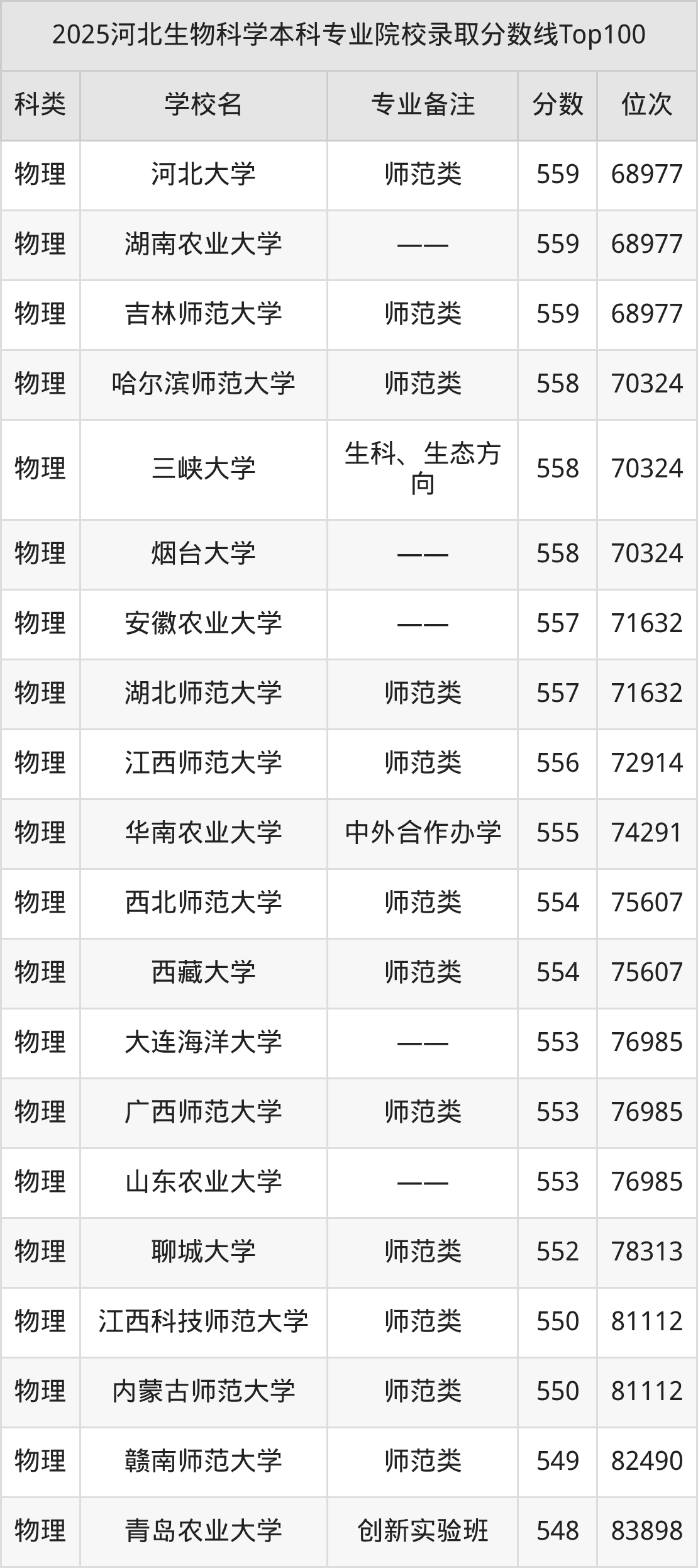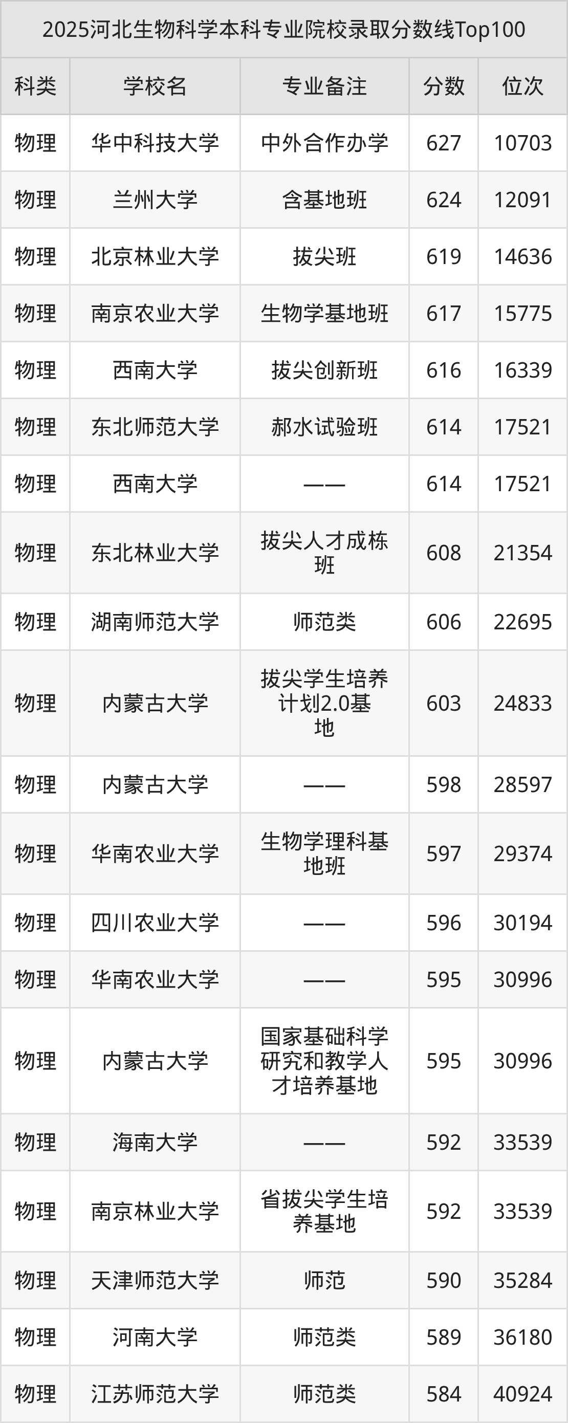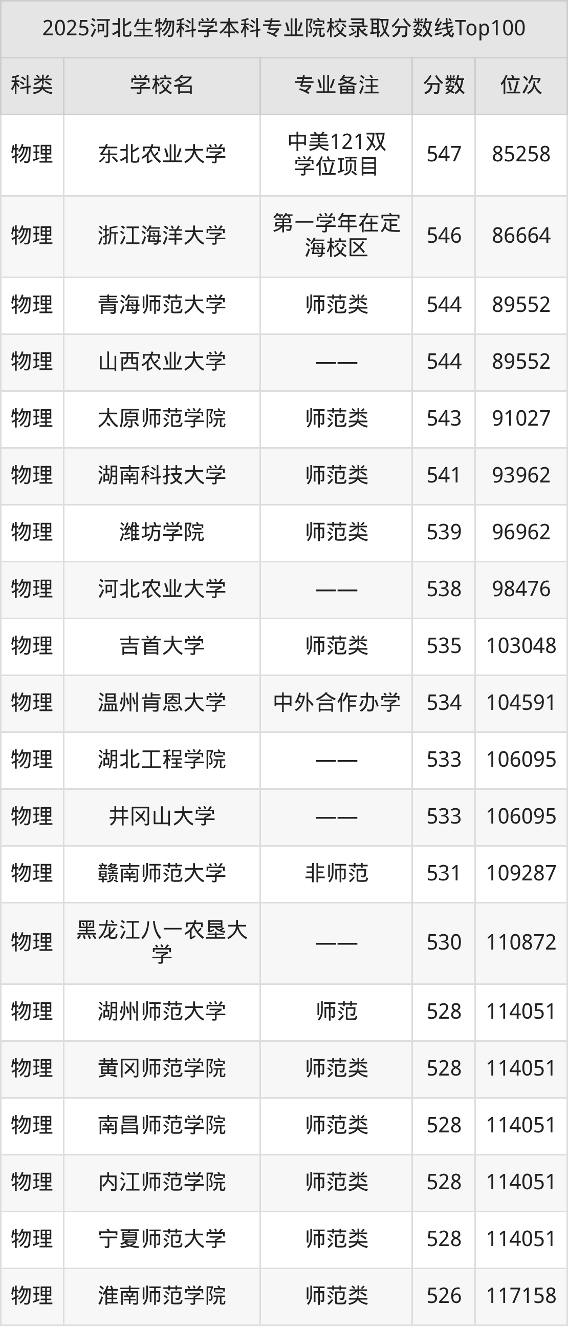 2025年河北生物科学分数线排名前5的大学名单(本科最难报考):